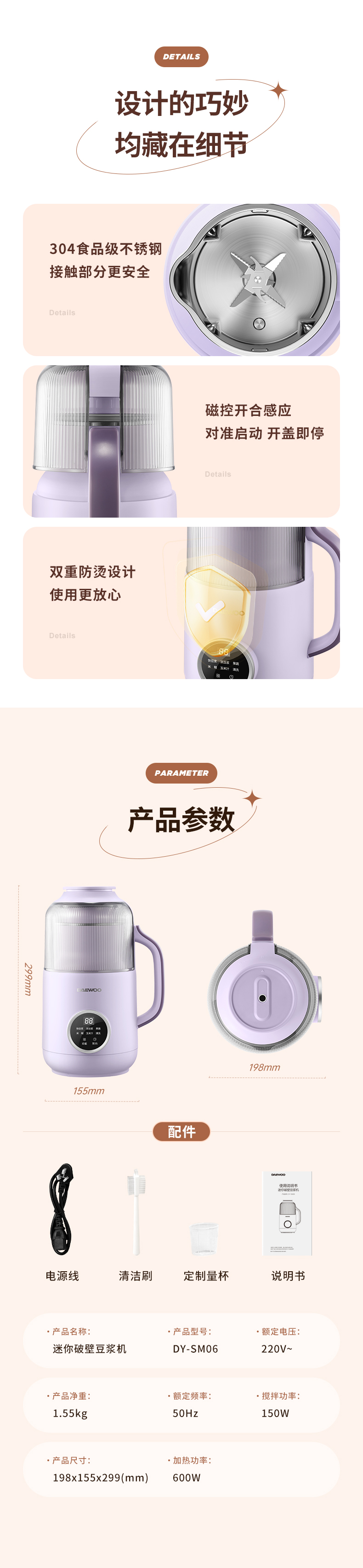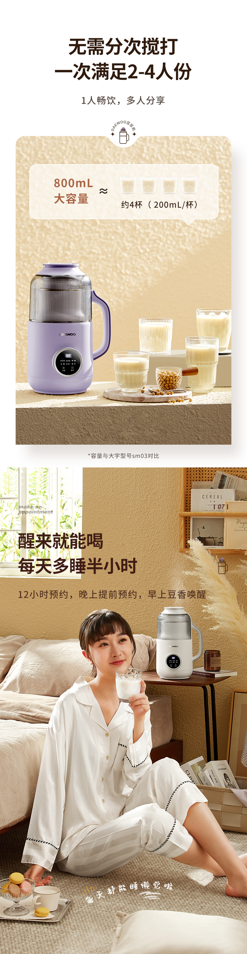 大宇豆浆机破壁机轻音小型豆浆机全自动DY-SM06 【800ML容量】