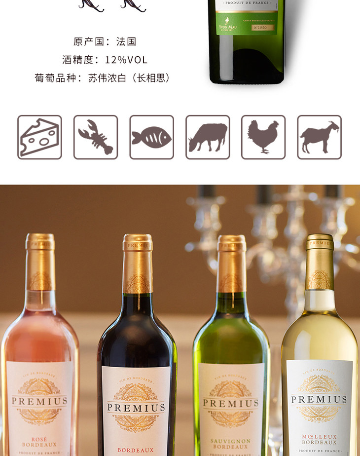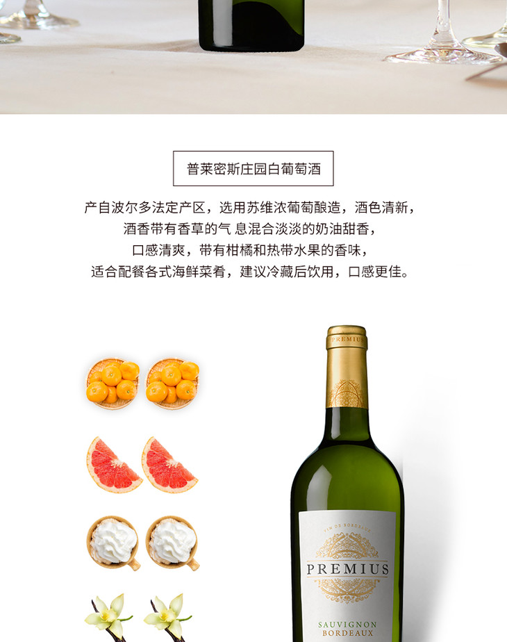 法国原瓶进口干白 普莱密斯城庄园白葡萄酒 Premius Blanc 单支装750ml