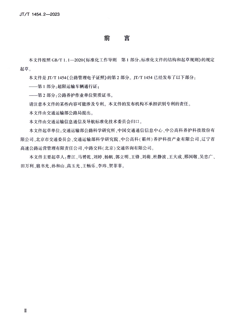 书名:公路管理电子证照 第2部分:公路养护作业单位资质证书(JT/T 1454.2-2023)