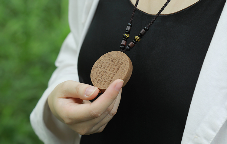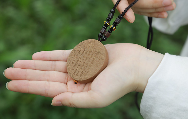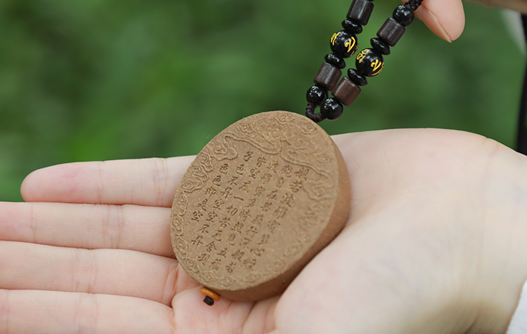 这块刻满经文的香牌,触感就像是在触摸时光,随时我在手心深呼吸,仿佛听到禅音在耳边轻诵“心无挂碍”。