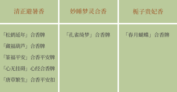 不同合香牌对应不同香气,或清幽高洁,或芬芳馥郁,总有一款是你的心头好。