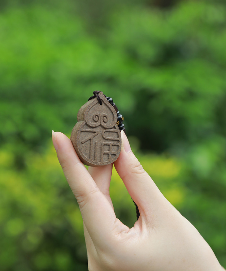 这枚葫芦香牌灵感源于传统的葫芦藏福纹,上面是祥云卷,葫芦肚里藏大“福”字,古拙、韵致、混重,佩戴在身简洁大气。