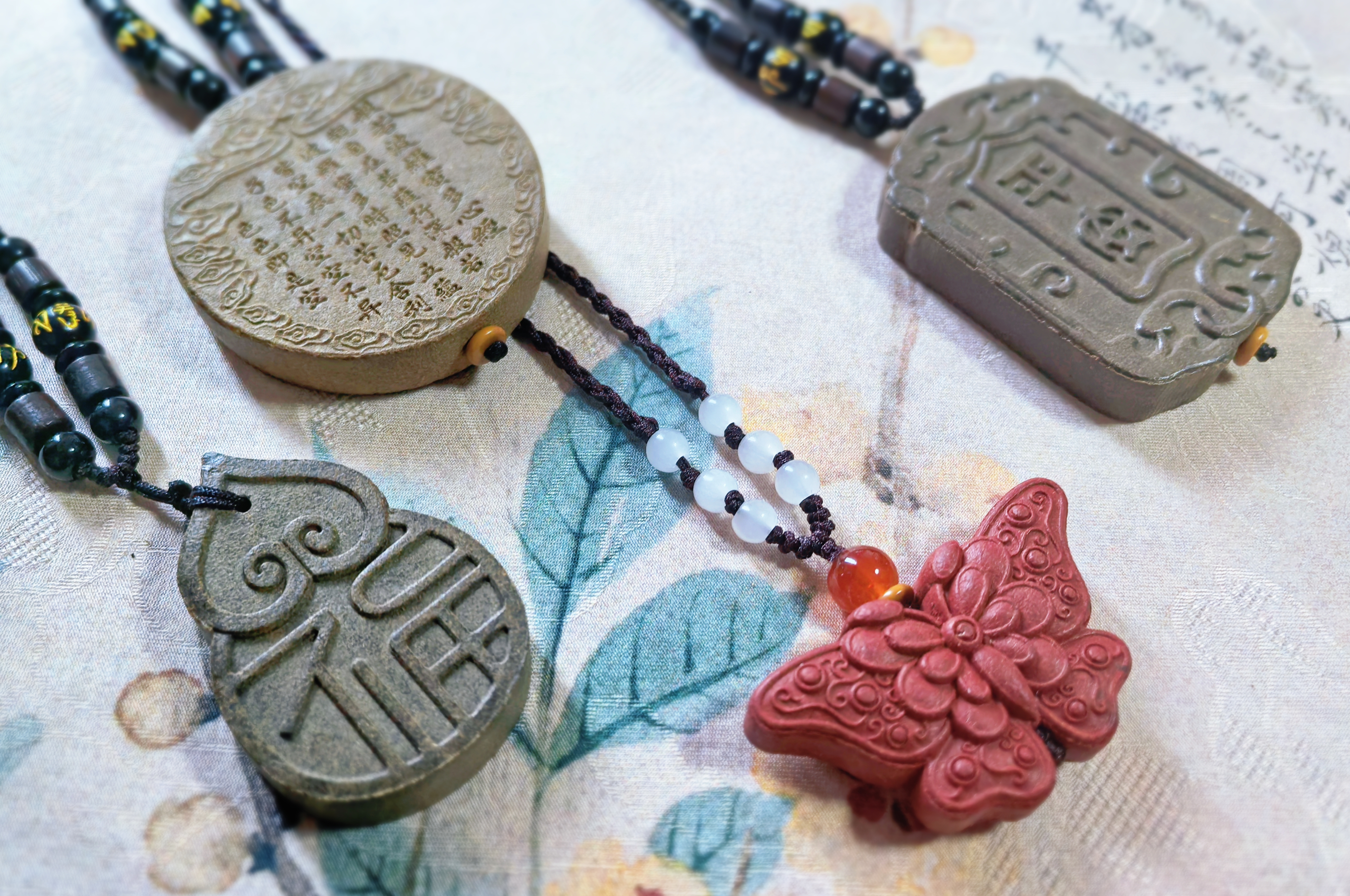 双栖蝶双飞、孔雀开屏、松鹤延年、葫芦藏福......美如诗画,将东方的气息揉进香牌里,让人一见倾心,让路过你身边的人都有着念念不忘的东方气韵。