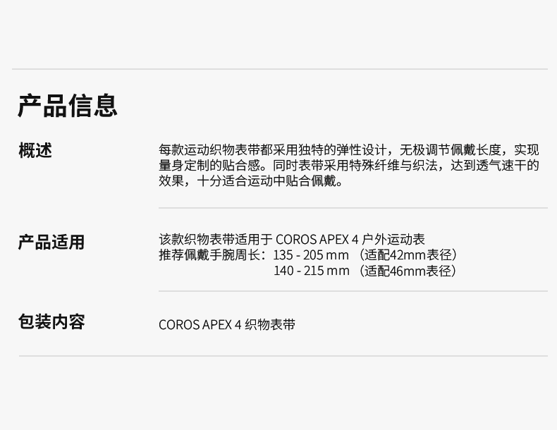 高驰COROS APEX 4系列织物表带