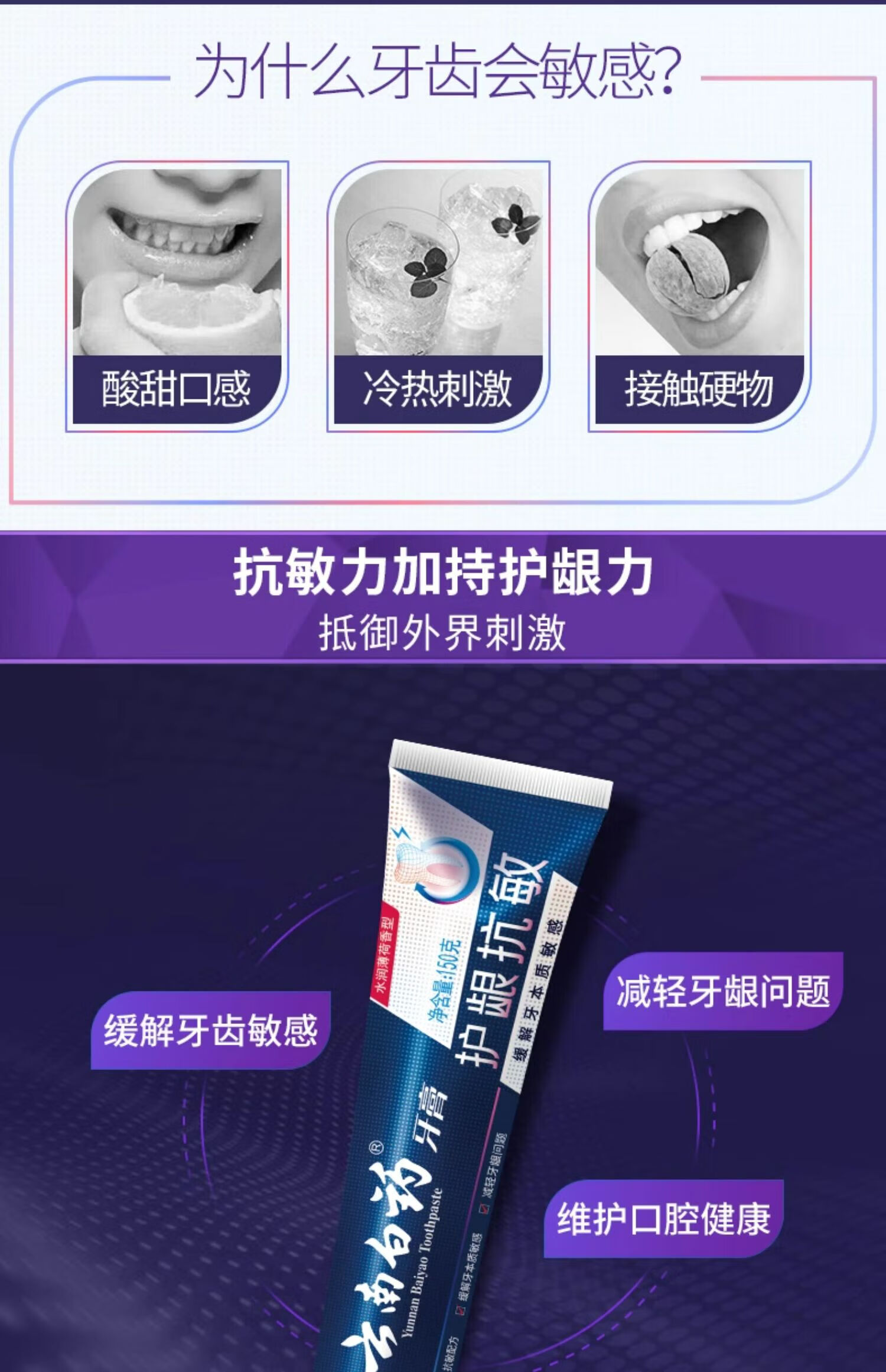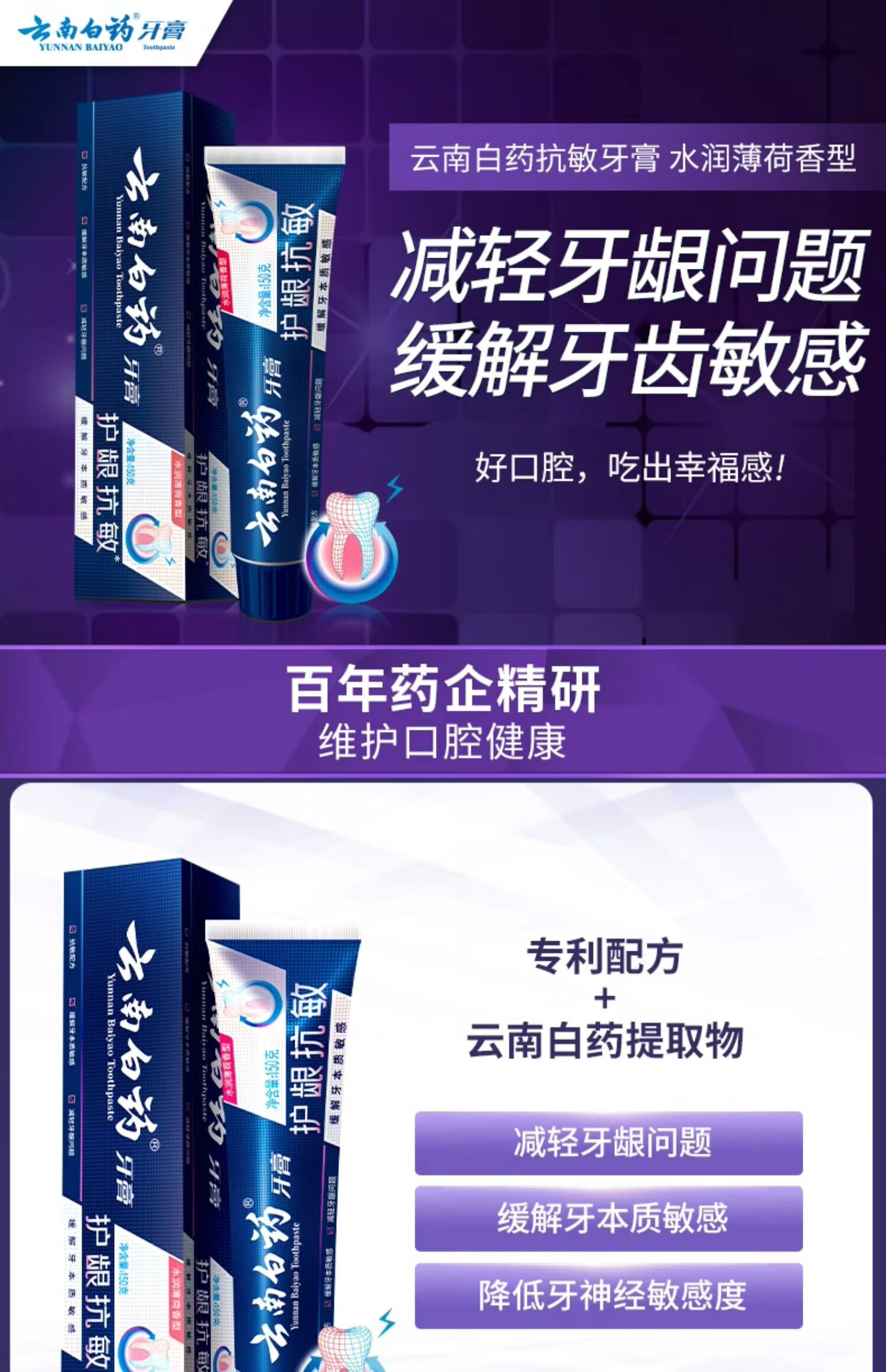 云南白药牙膏双效抗敏150克/支