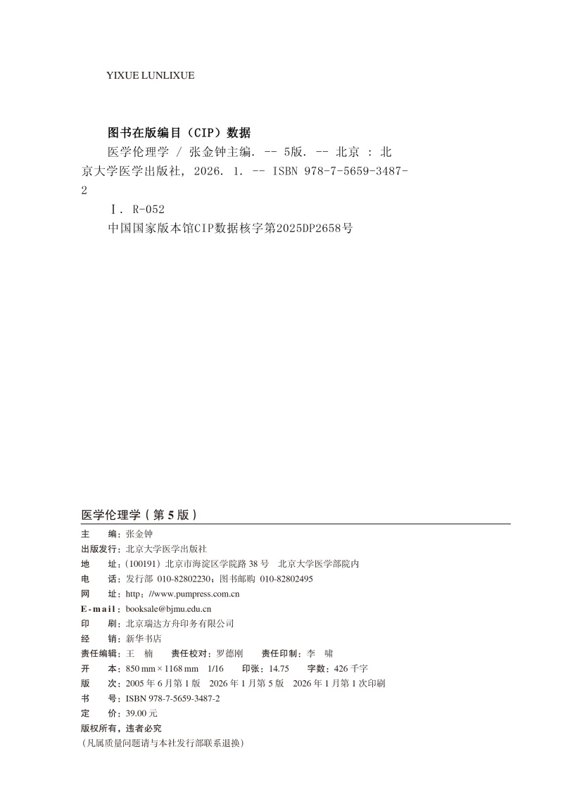 书名:医学伦理学(第5版)“十四五”普通高等教育本科规划教材