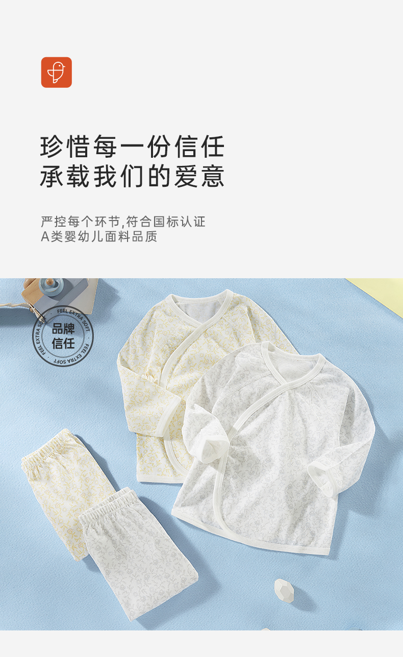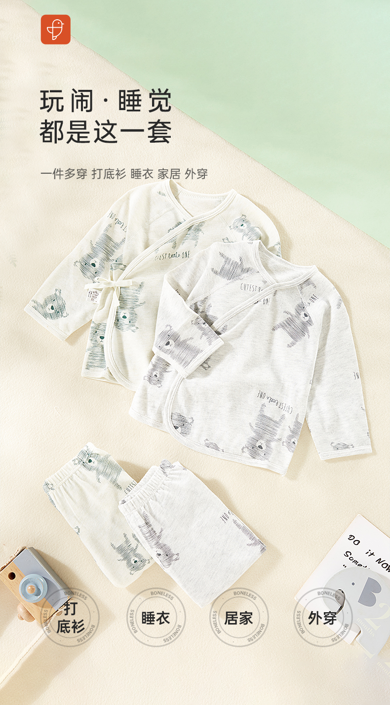 [春季薄套装]卓儿新生儿0-6月长袖套装宝宝打底衣系带护肚纯棉