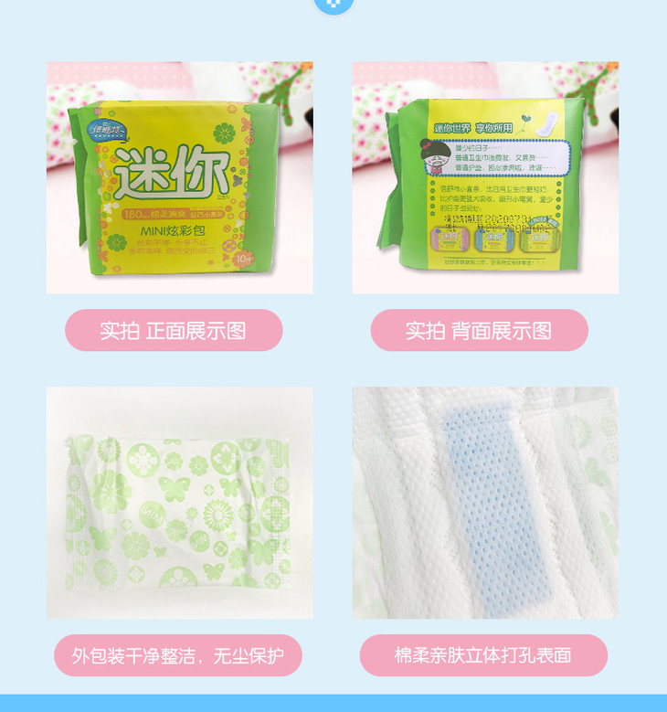 【倍舒特】棉柔亲肤清爽小迷你护垫卫生巾180mm轻巧小直条炫彩包10片(791359)