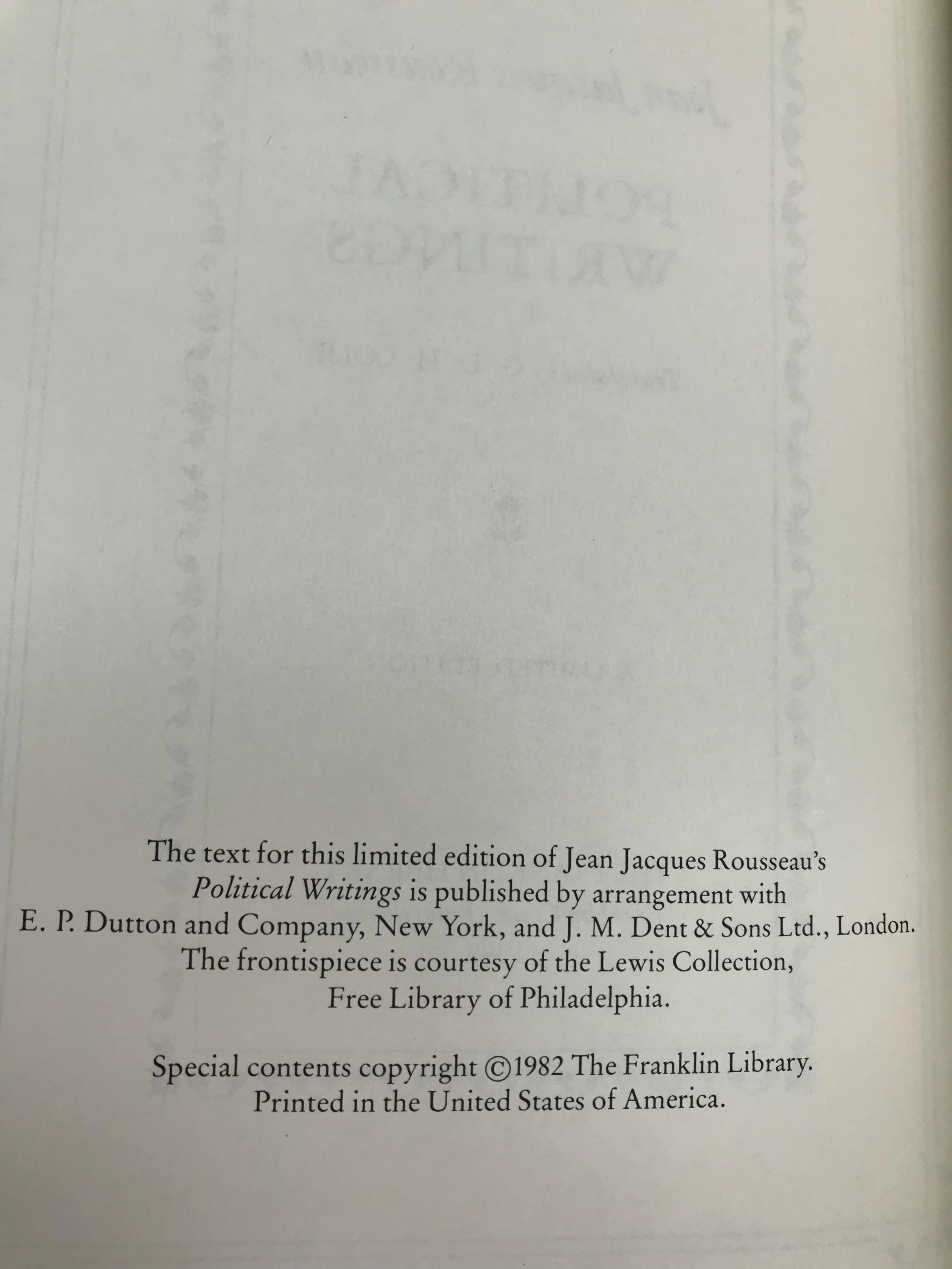 限量版!让 - 雅克・卢梭《让 - 雅克・卢梭政治著作集》 富兰克林图书馆豪华皮装本