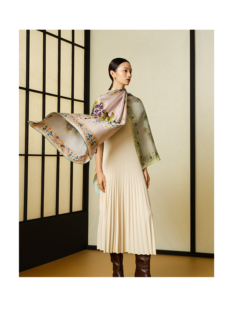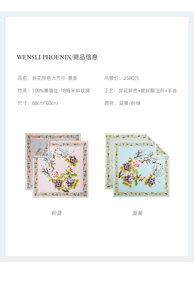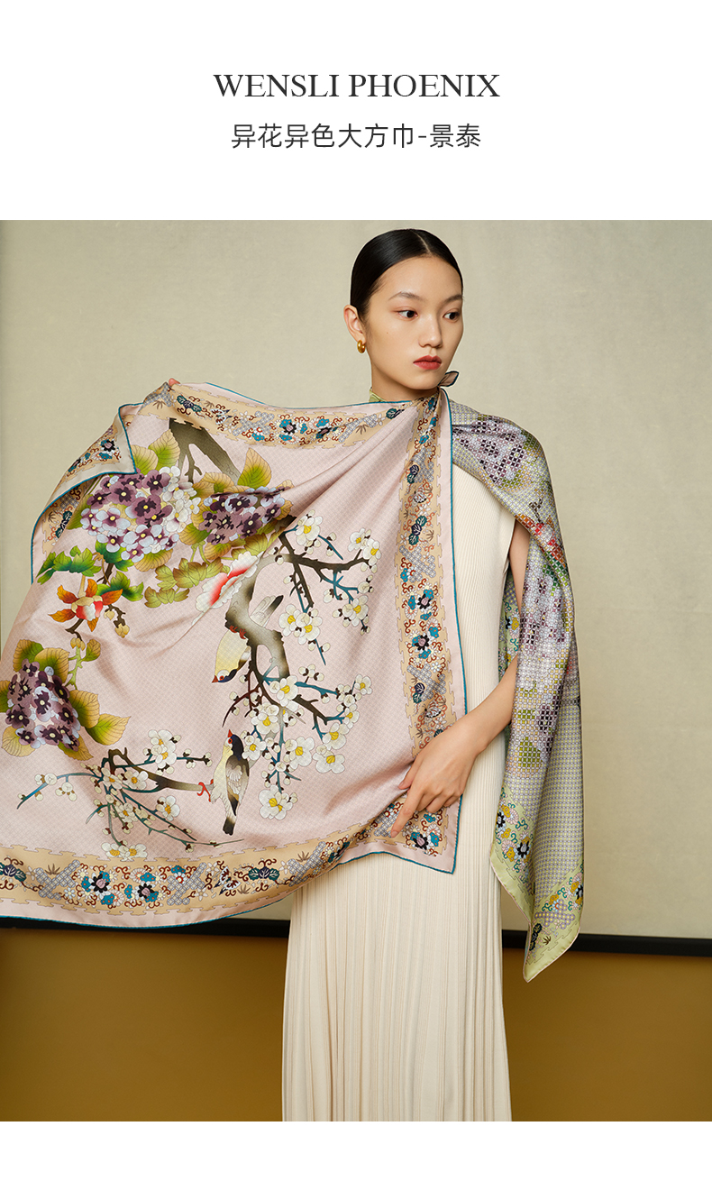 凤凰之家“景泰”88厘米异花异色真丝大方巾