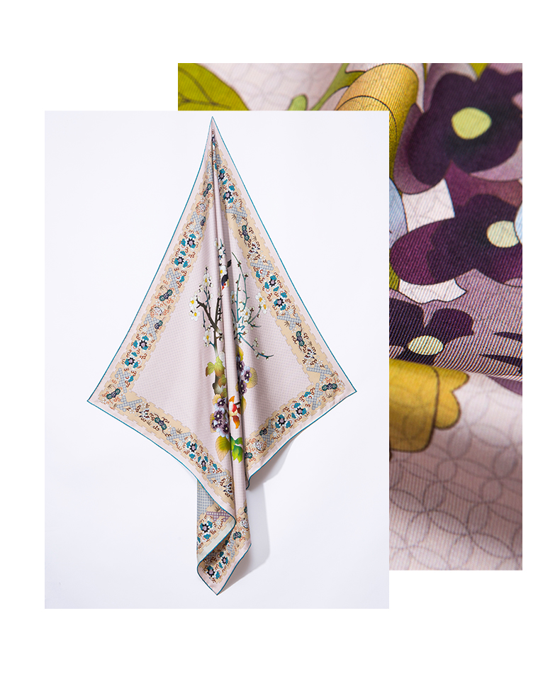 万事利“露华浓”63厘米双面印花真丝中方巾