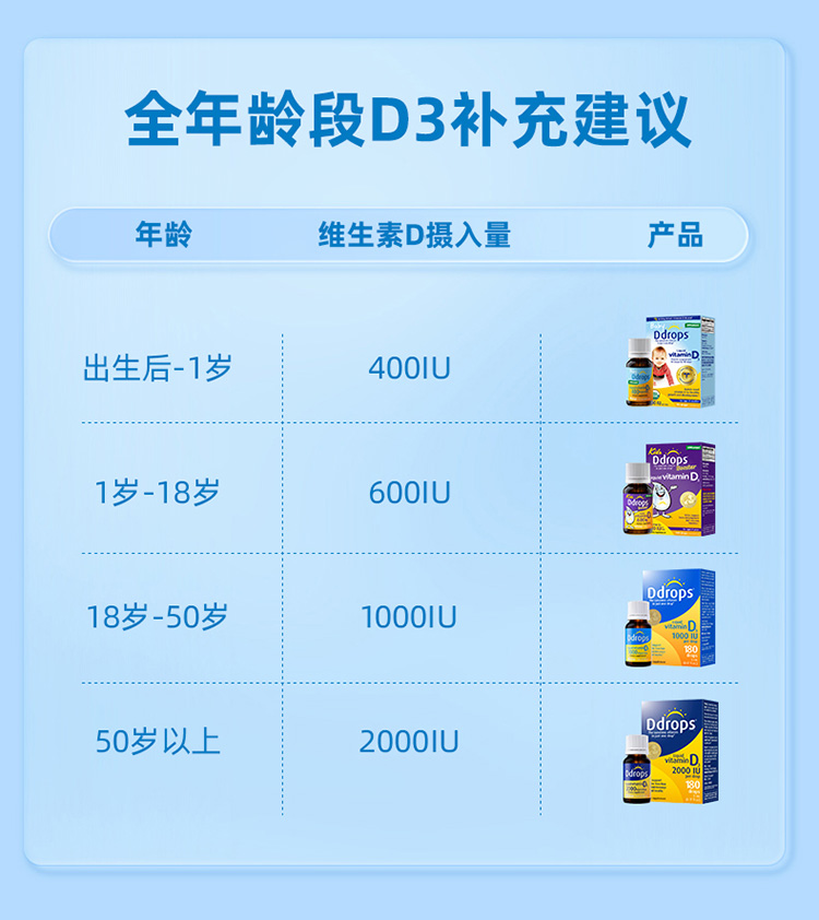 加拿大Ddrops维生素D3 400iu蓝色2.5ml/盒