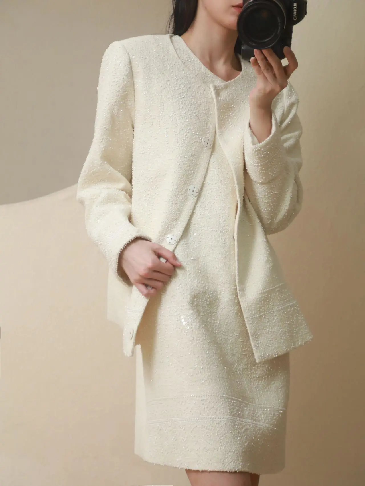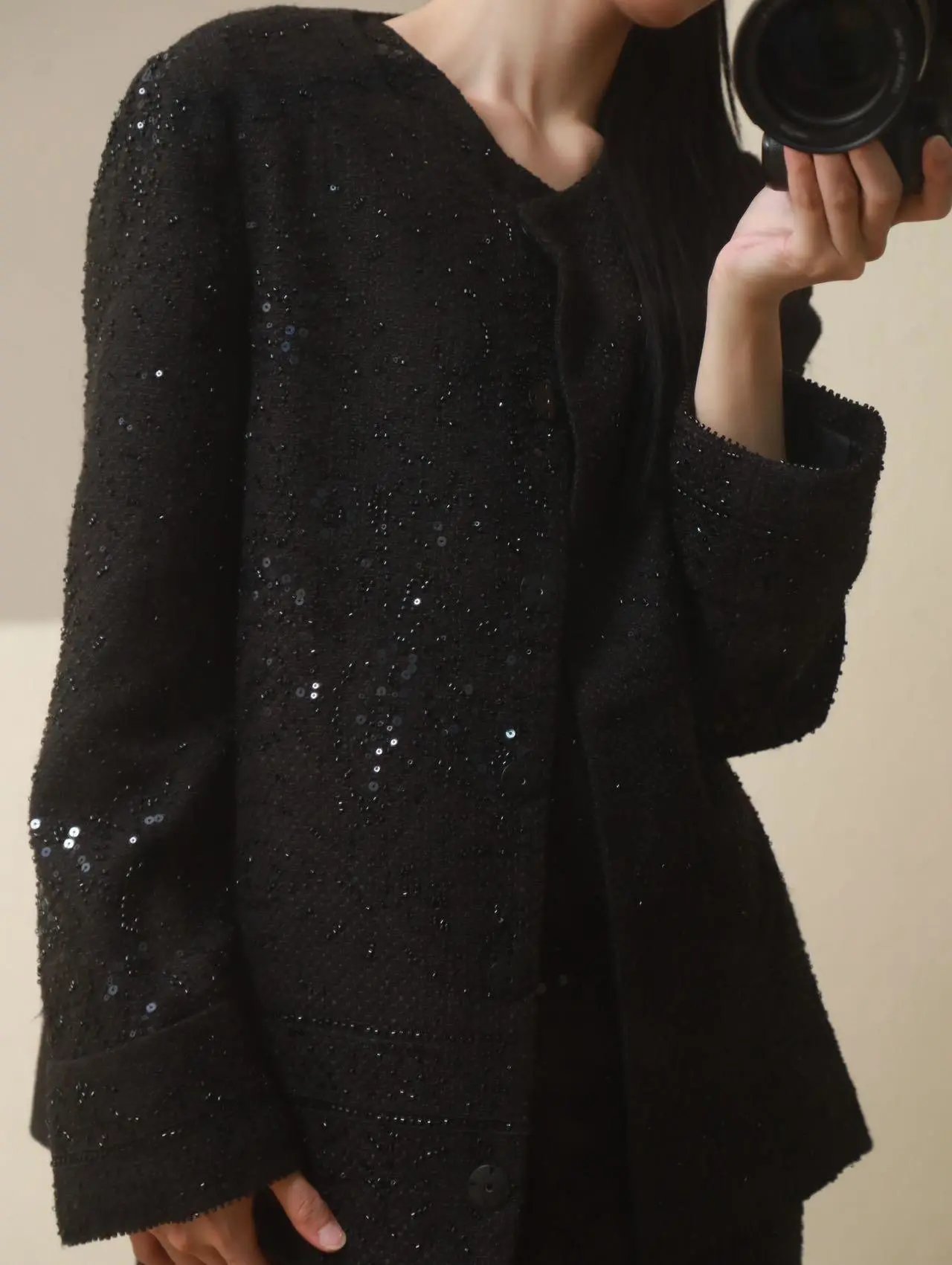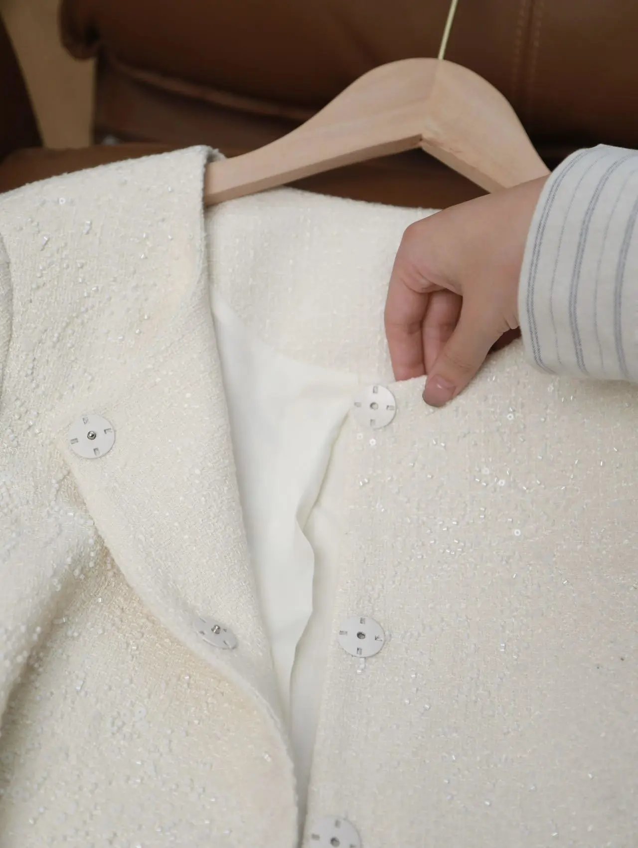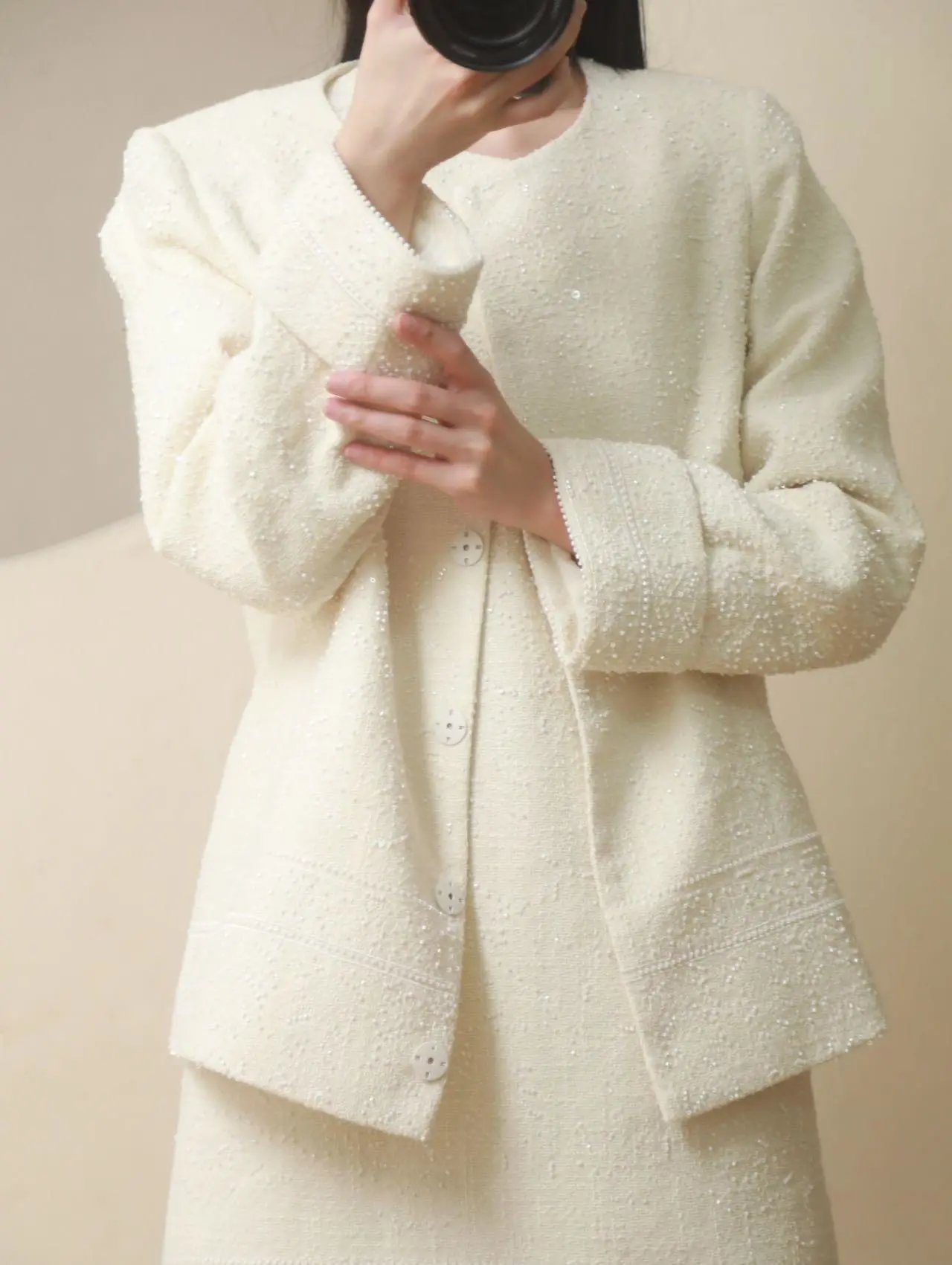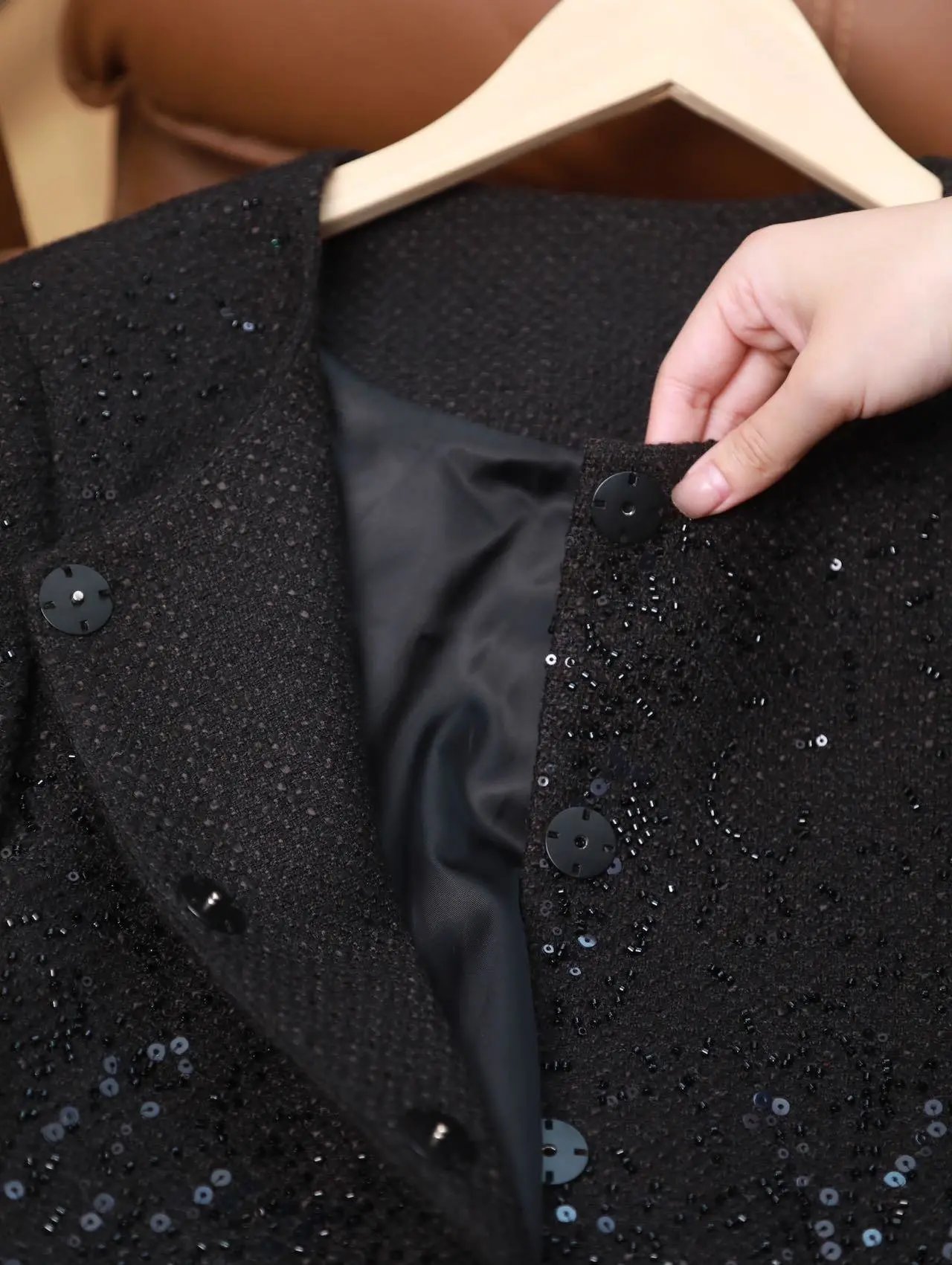 ❗️原厂订单捡漏❗️订单尾货成本价清⚠️稀缺进口羊毛粗花呢面料⚠️chao级重工❗️亮片钉珠~时尚界的贵族❗️大女主气质款