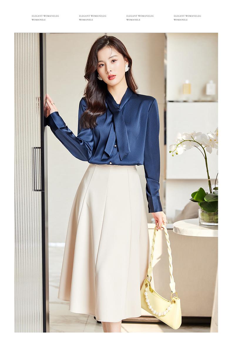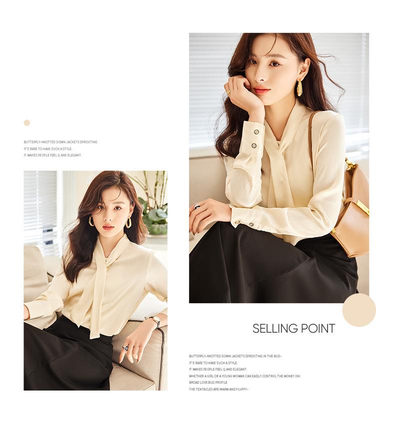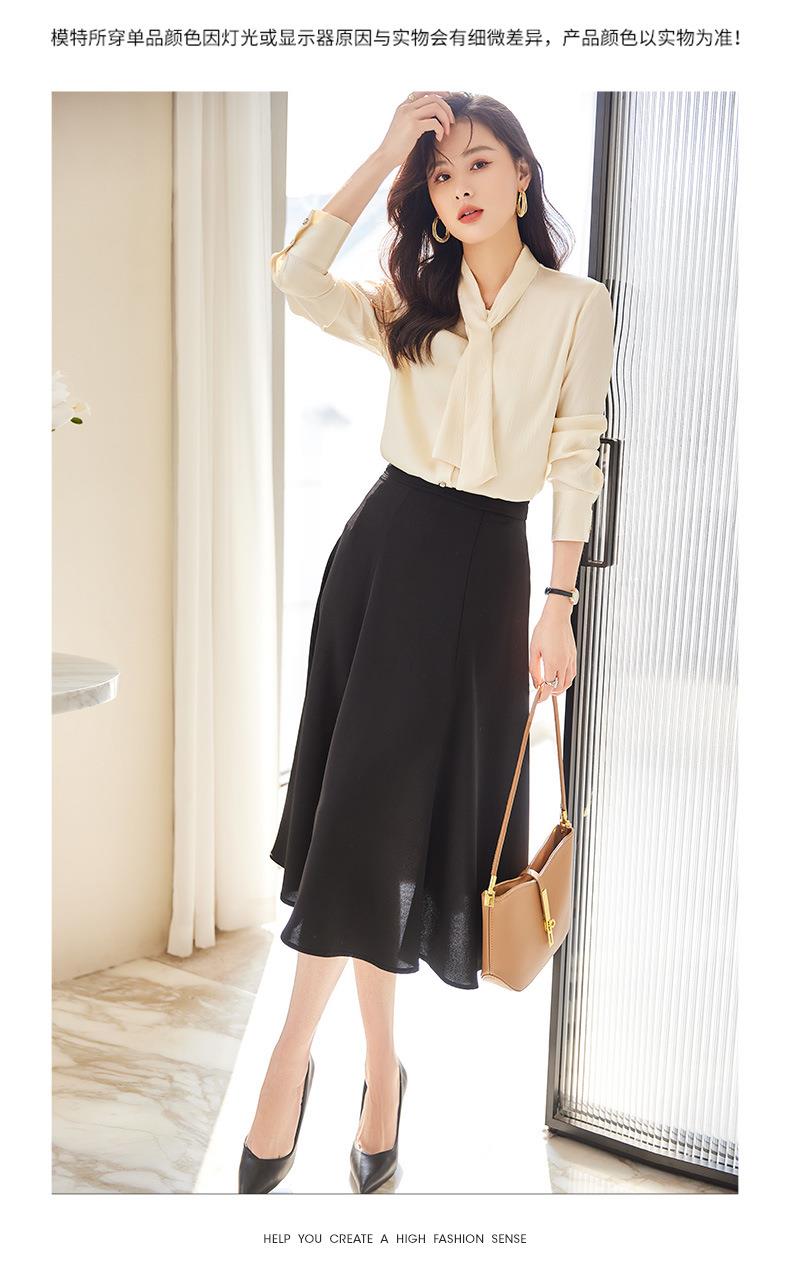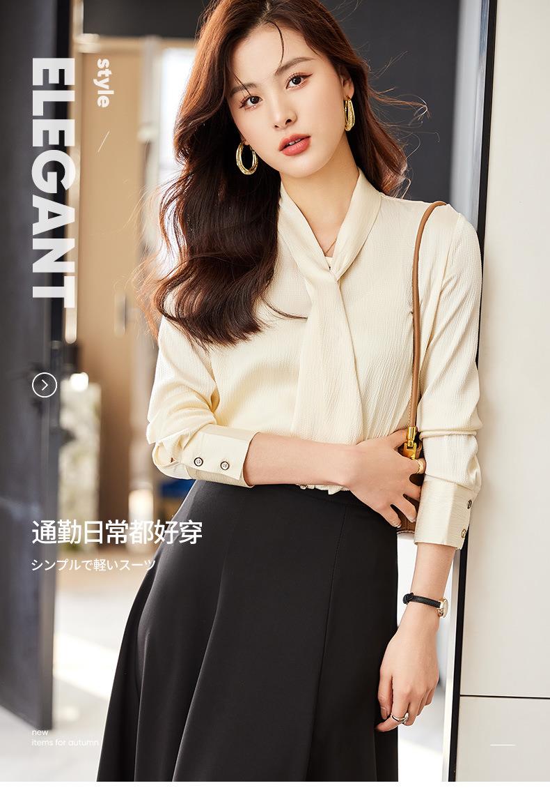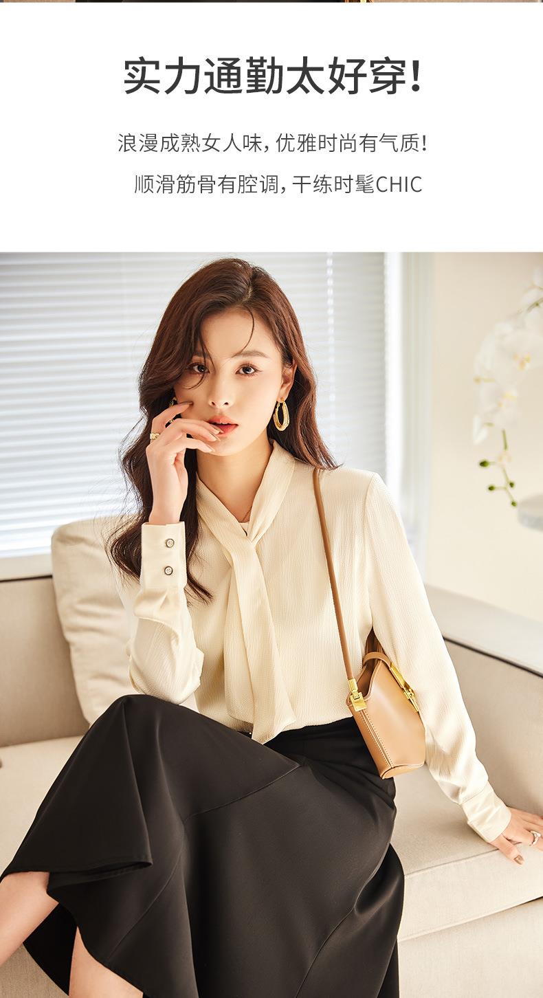 娜璐多 白色衬衫女2023秋季新款飘带设计感气质长袖上衣搭配半身裙两件套