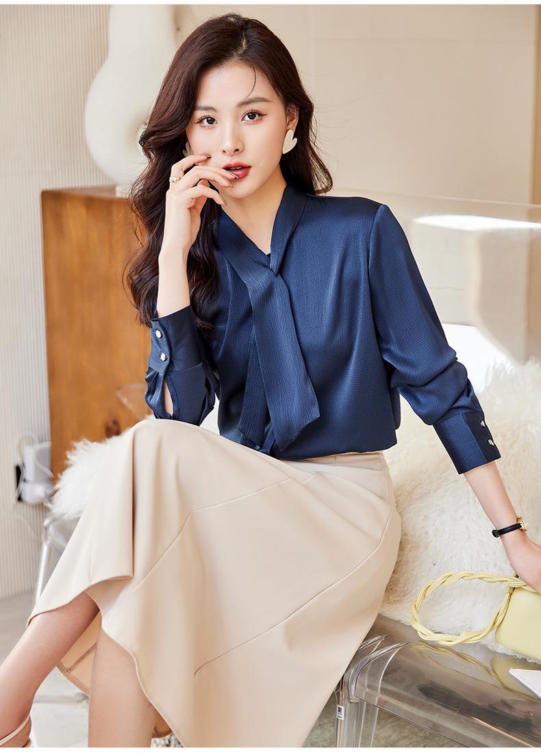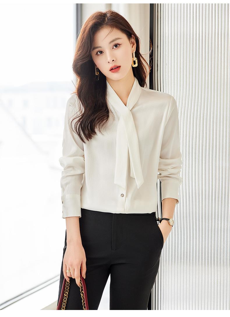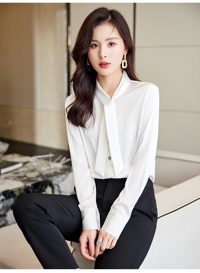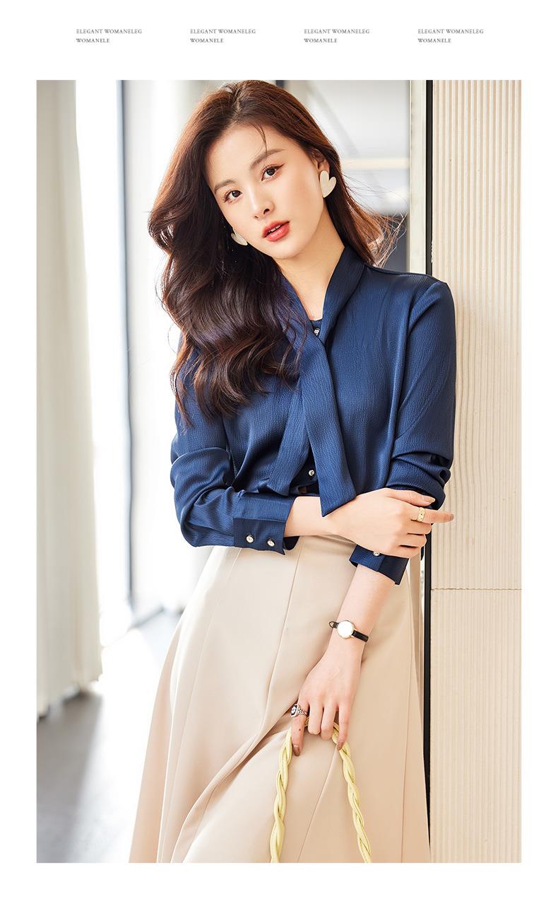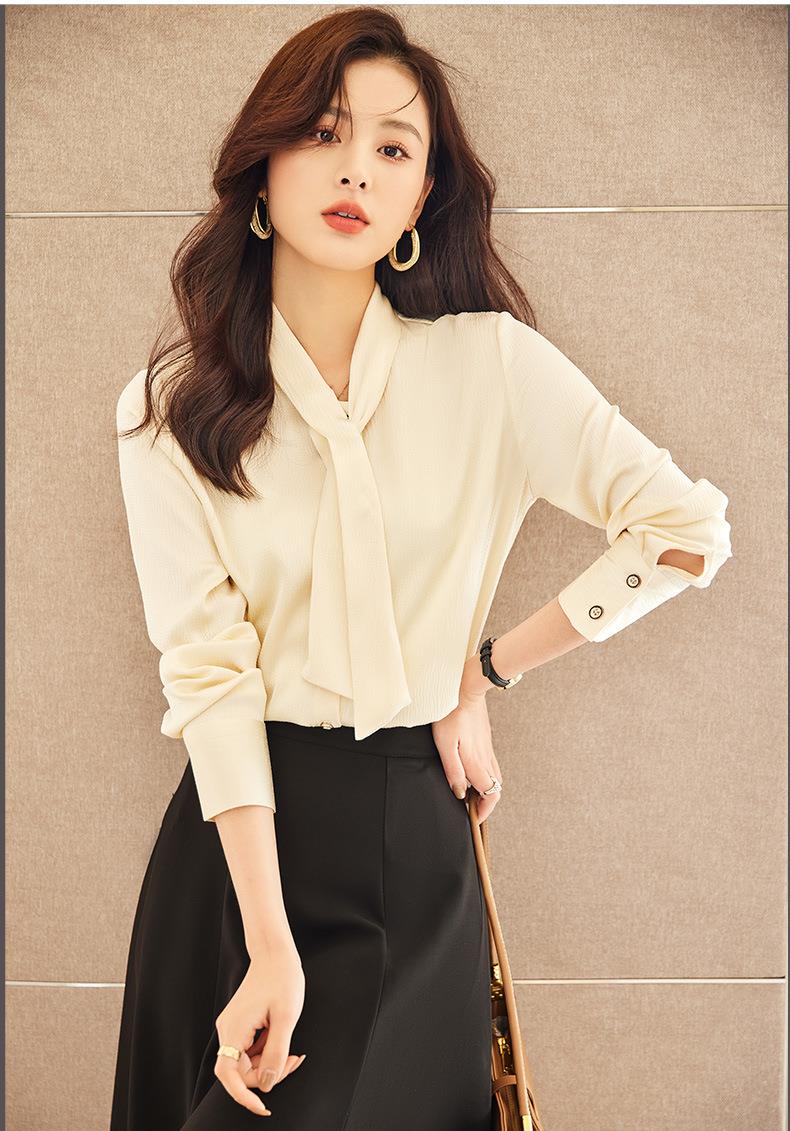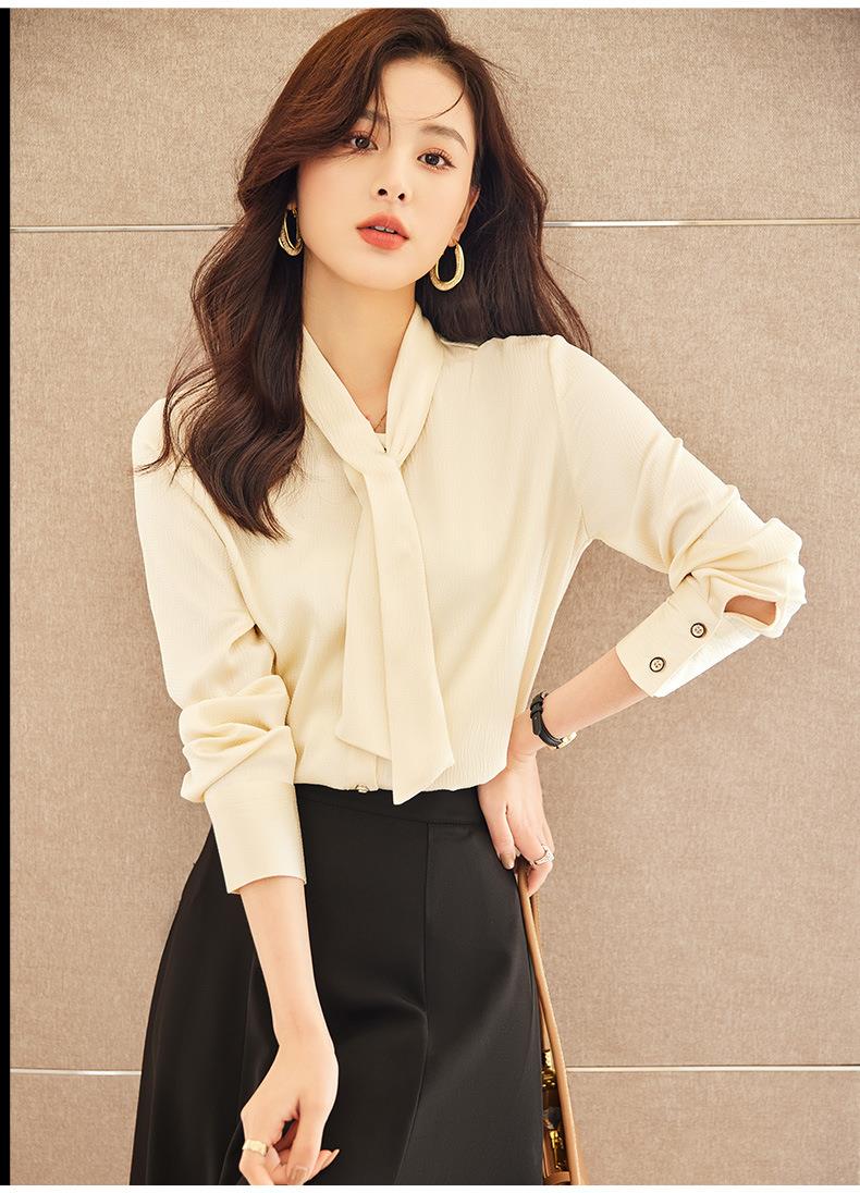 娜璐多 白色衬衫女2023秋季新款飘带设计感气质长袖上衣搭配半身裙两件套
