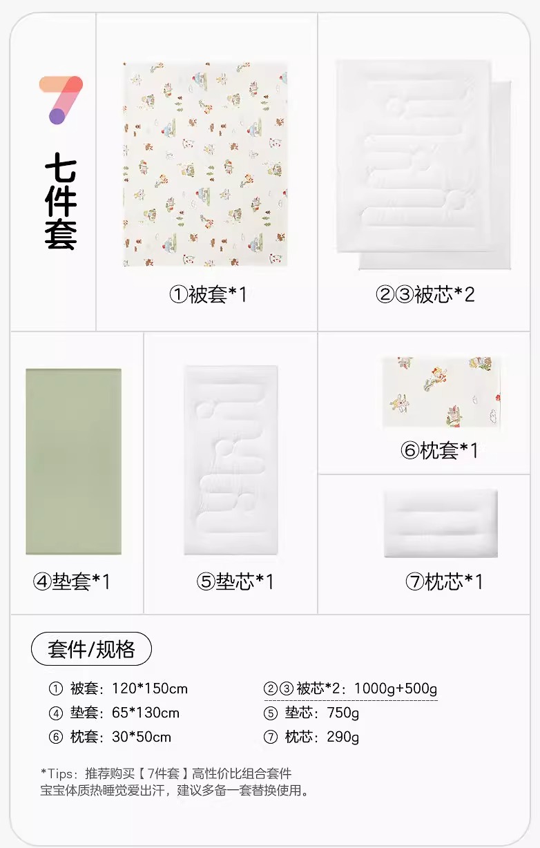 可优比甜茶日记幼儿园三件套被子儿童被褥七件套纯棉午睡床品秋冬