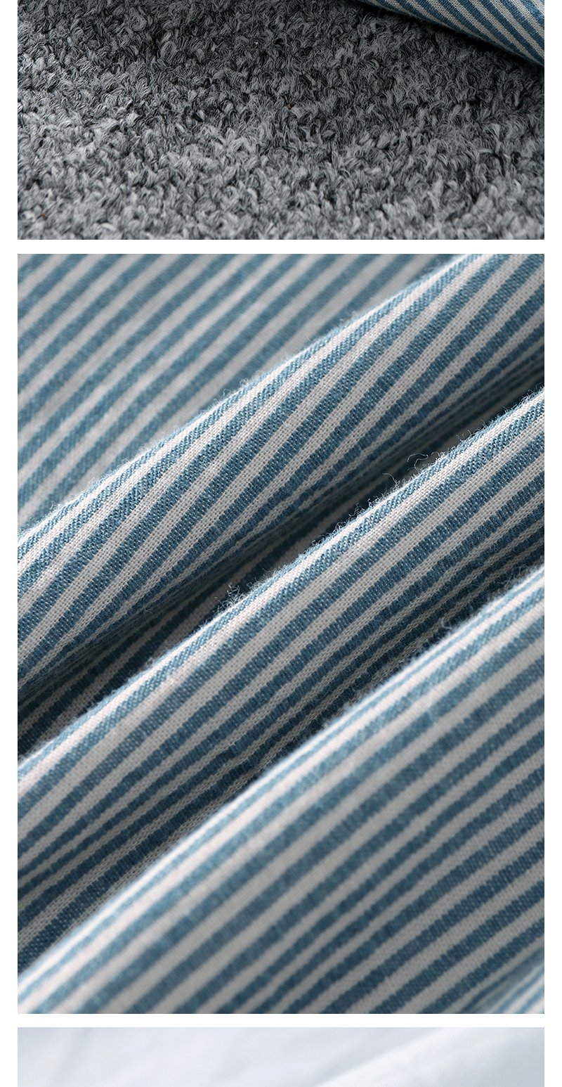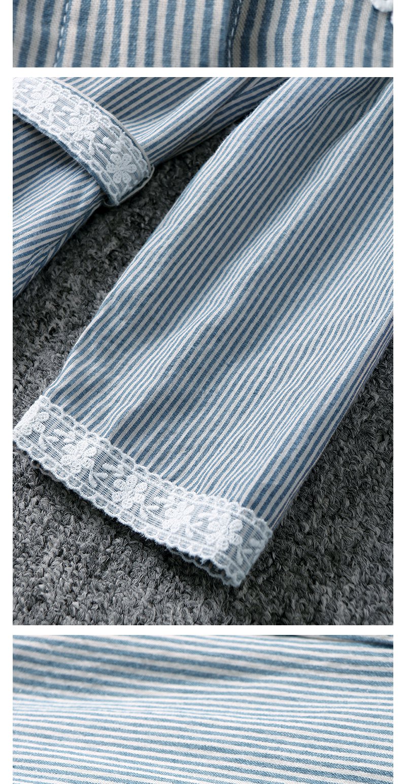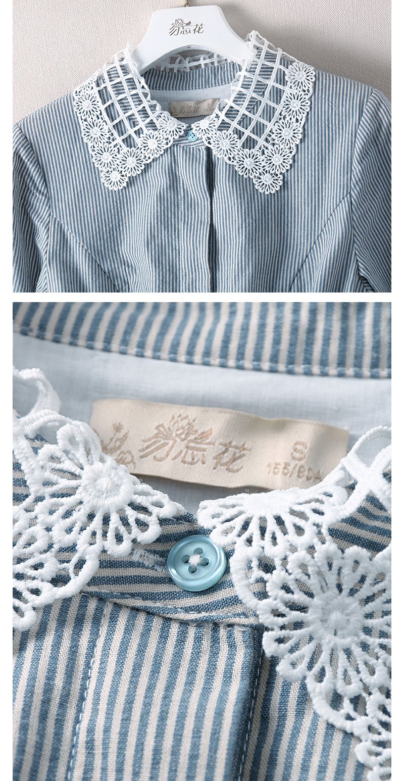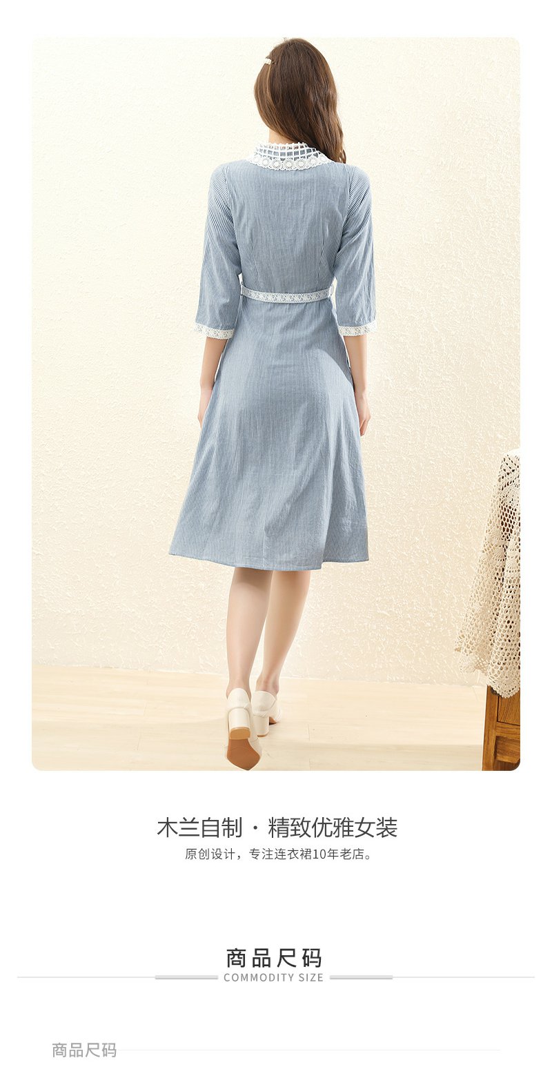 勿忘花蓝色镂空翻领条纹气质连衣裙2025女装秋季新款修身显瘦裙子