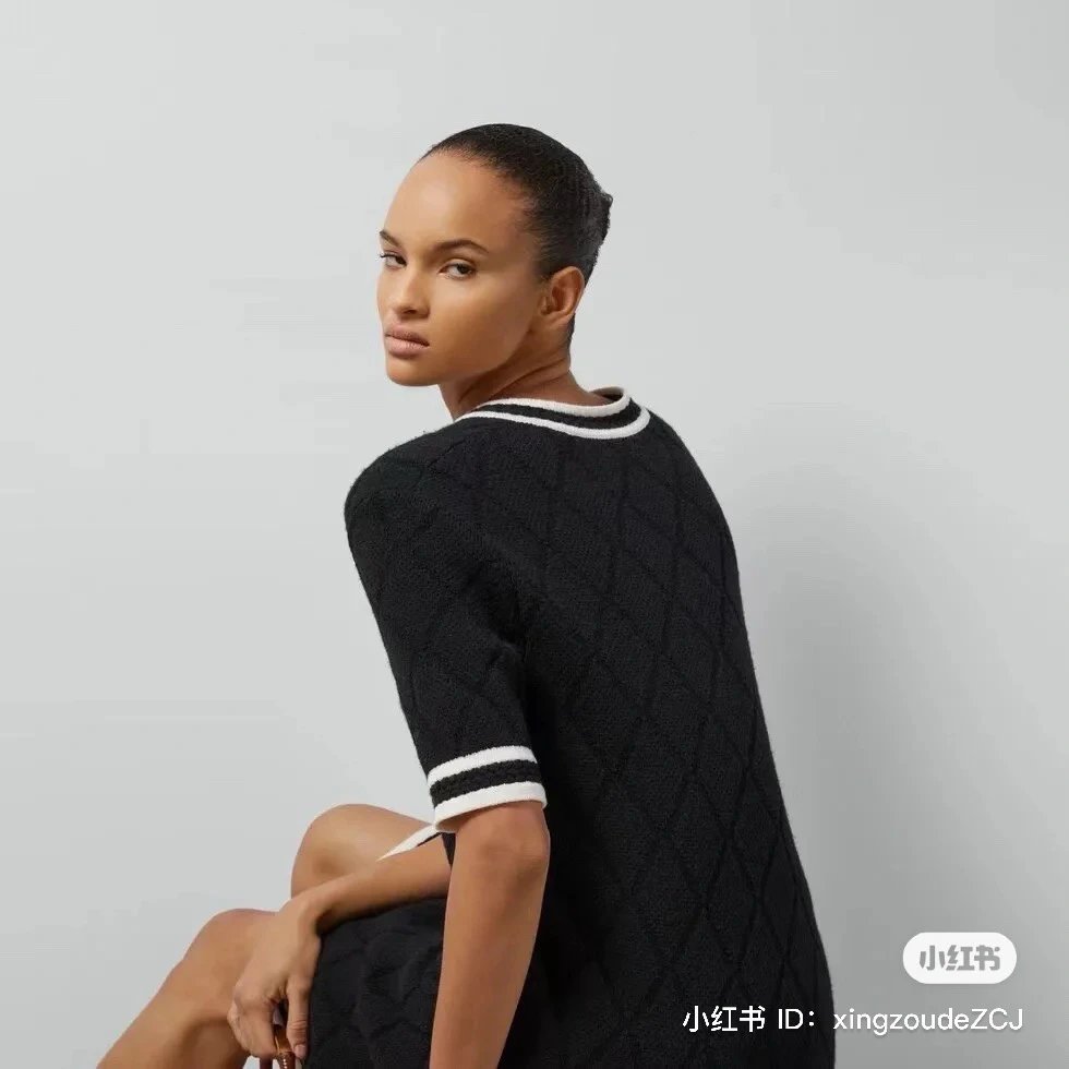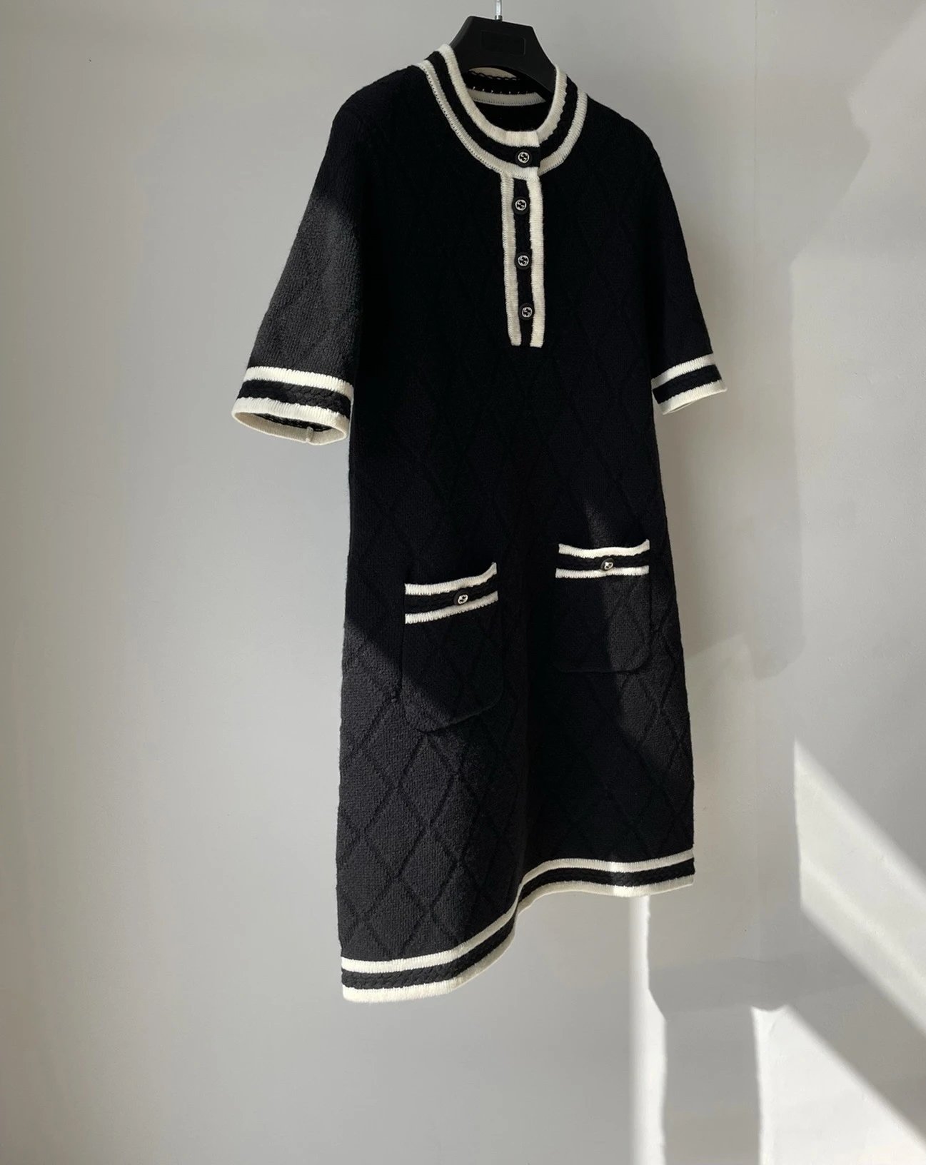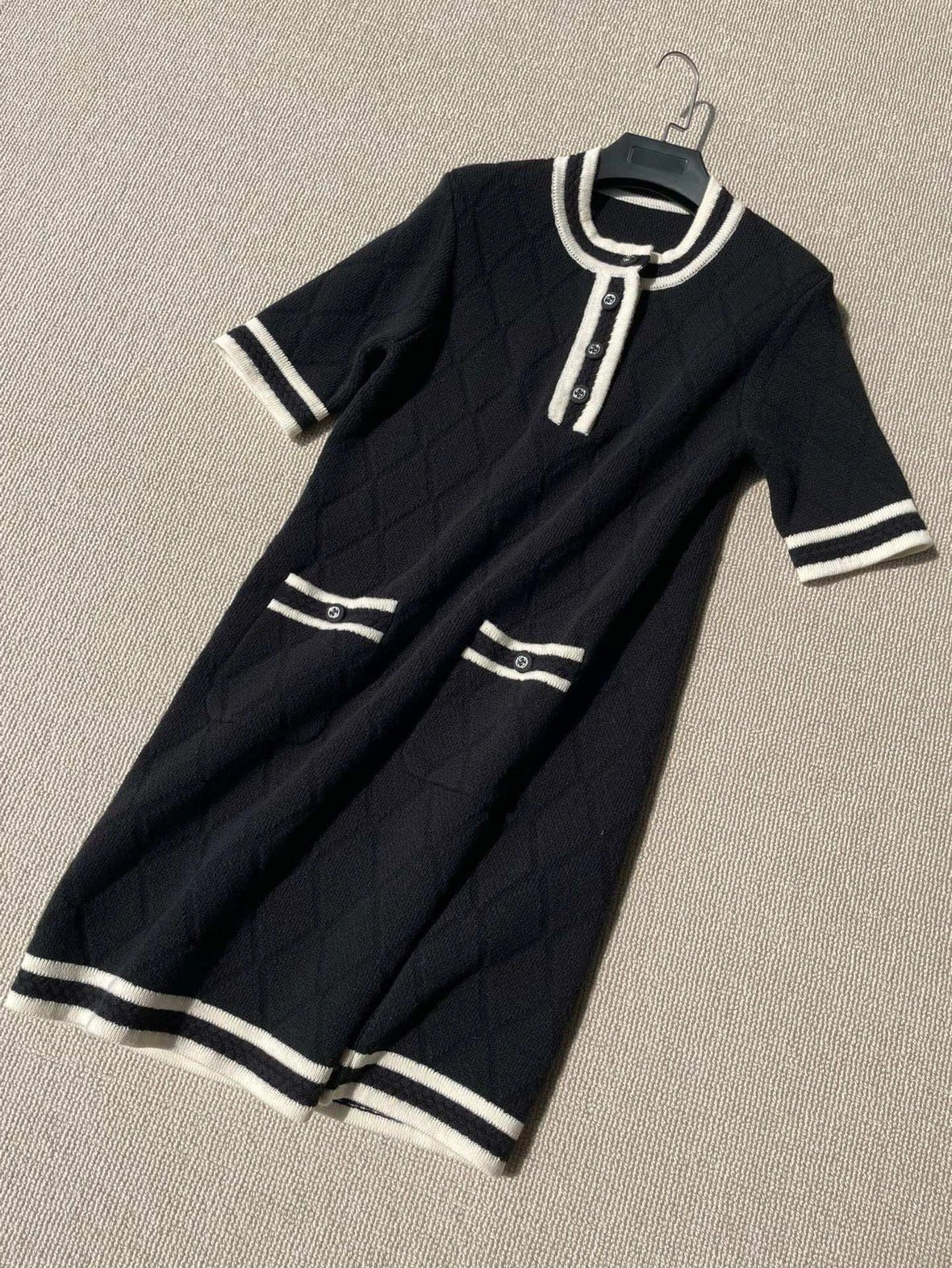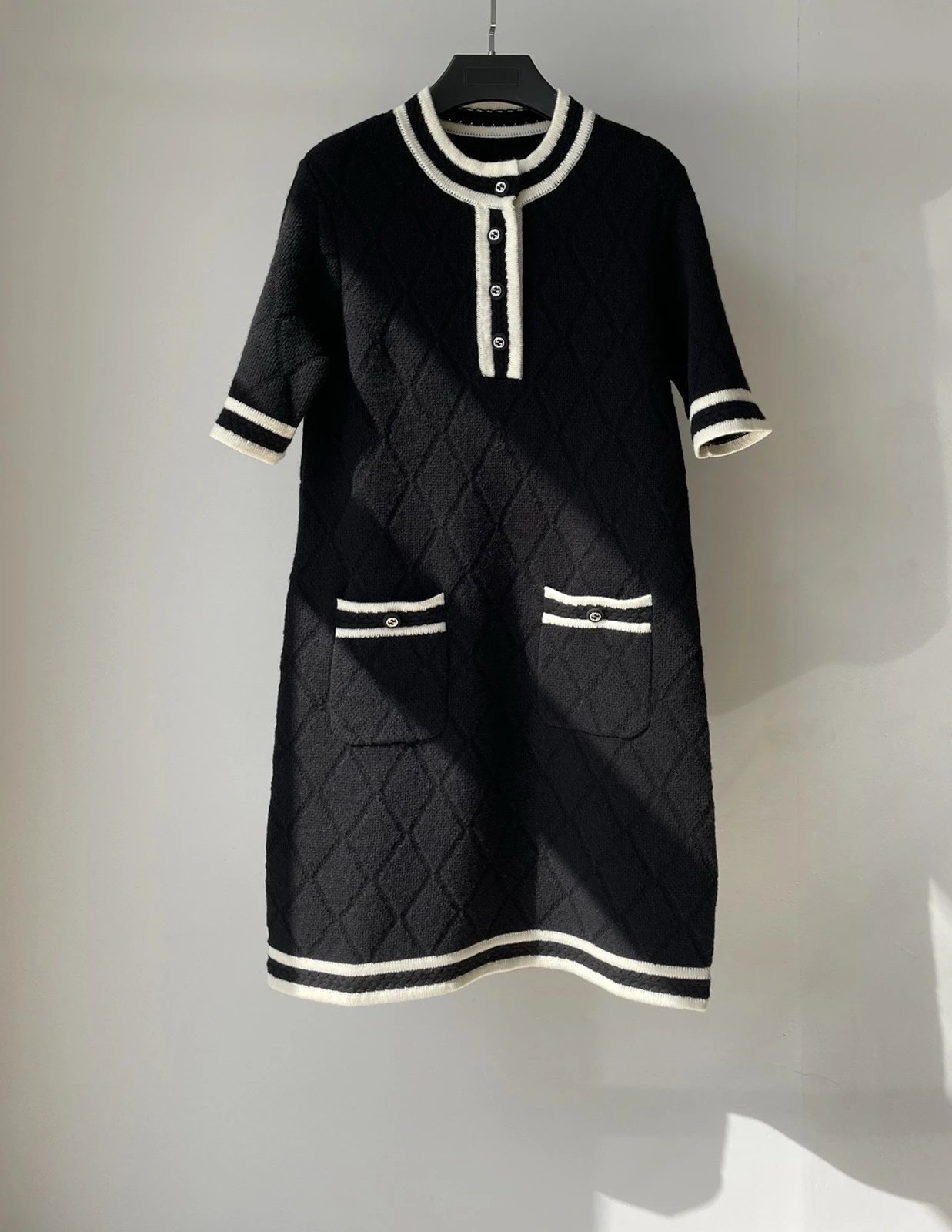 贸易公司订单 zp无标!大G黑白拼接菱格连衣裙 意大利进口羊毛
