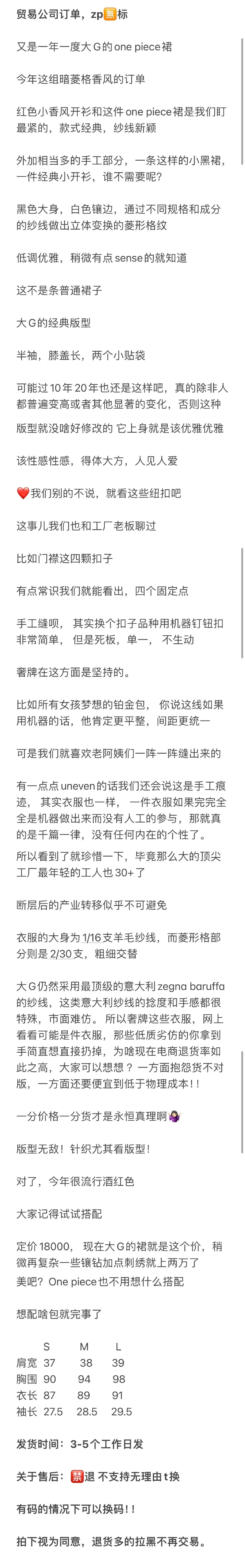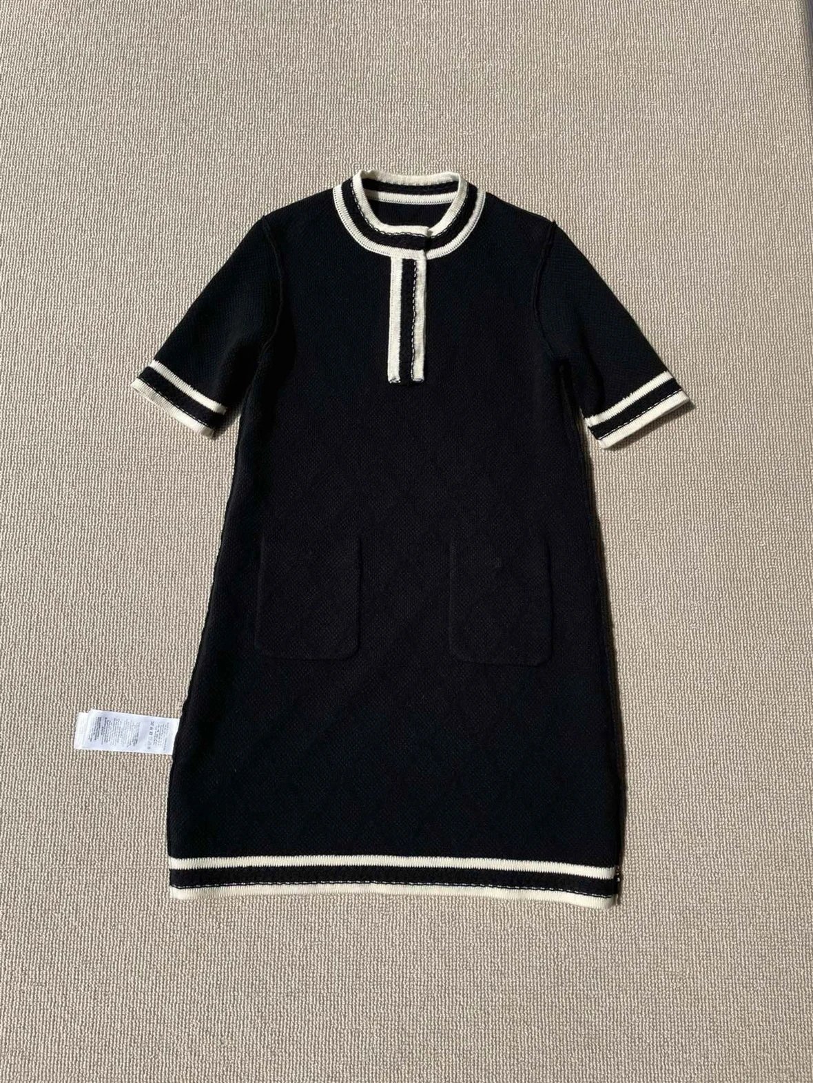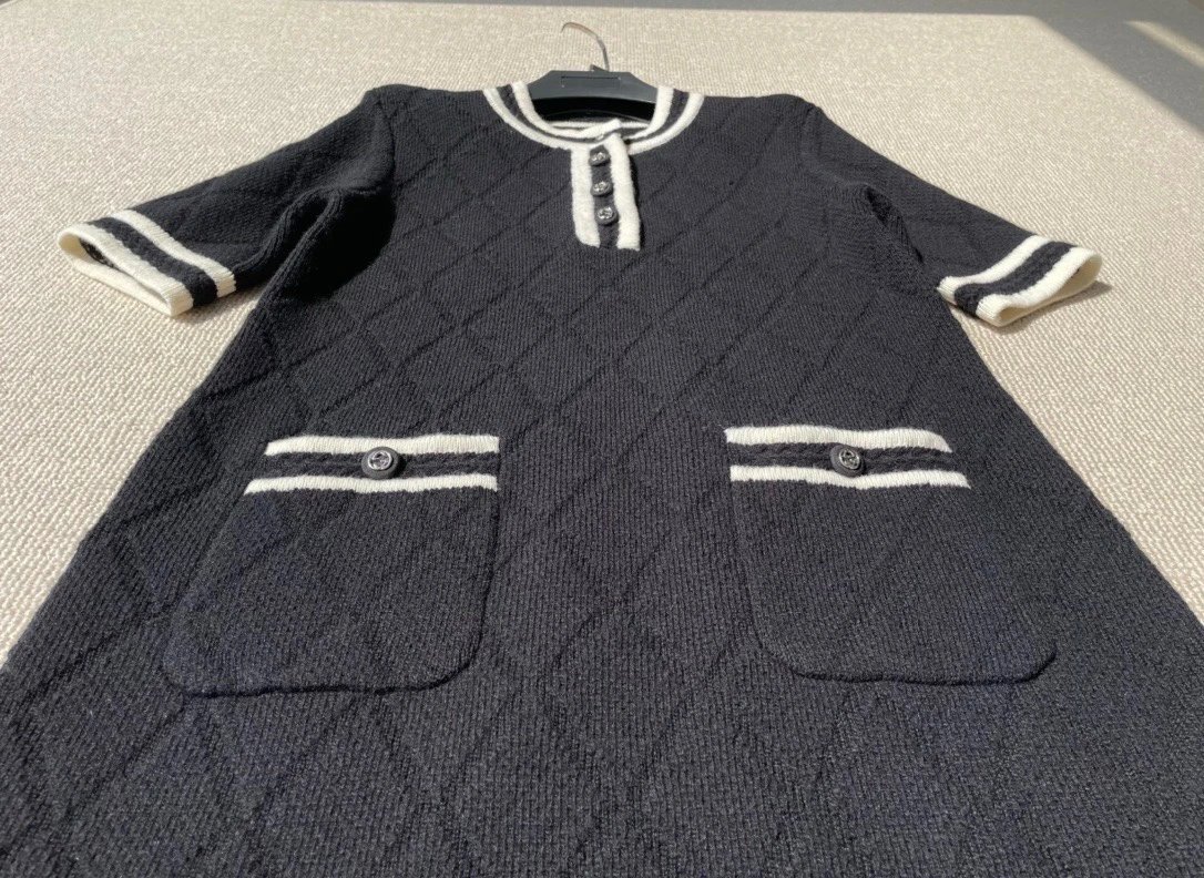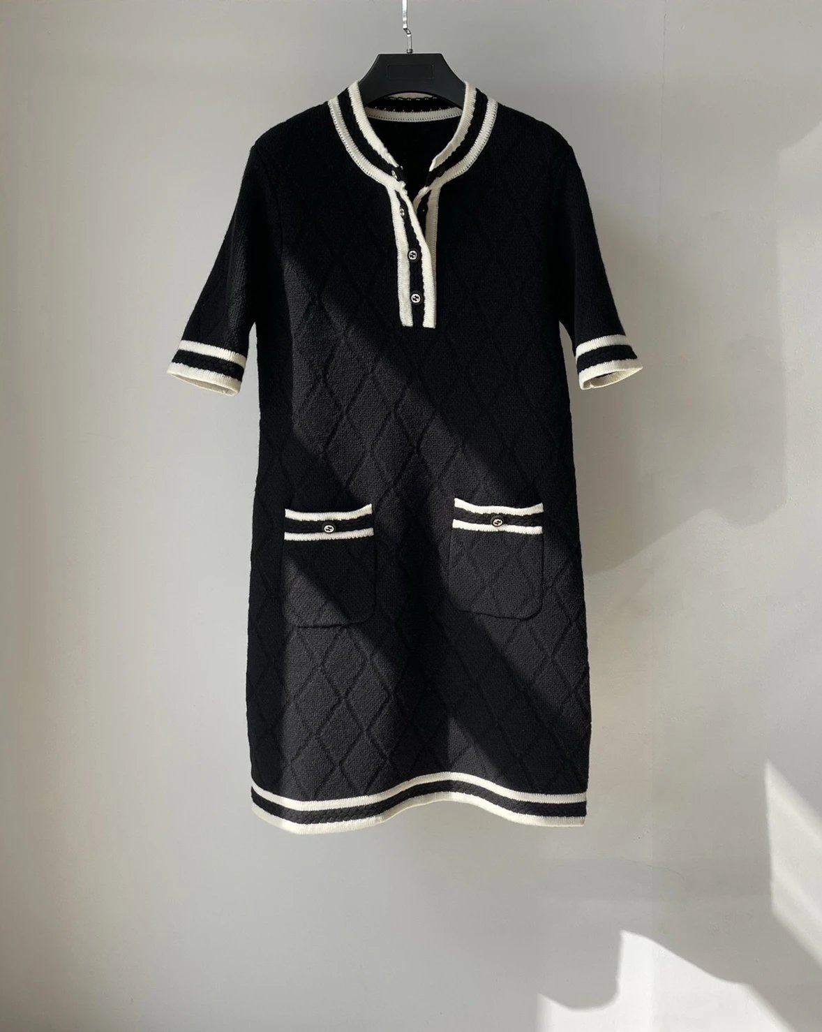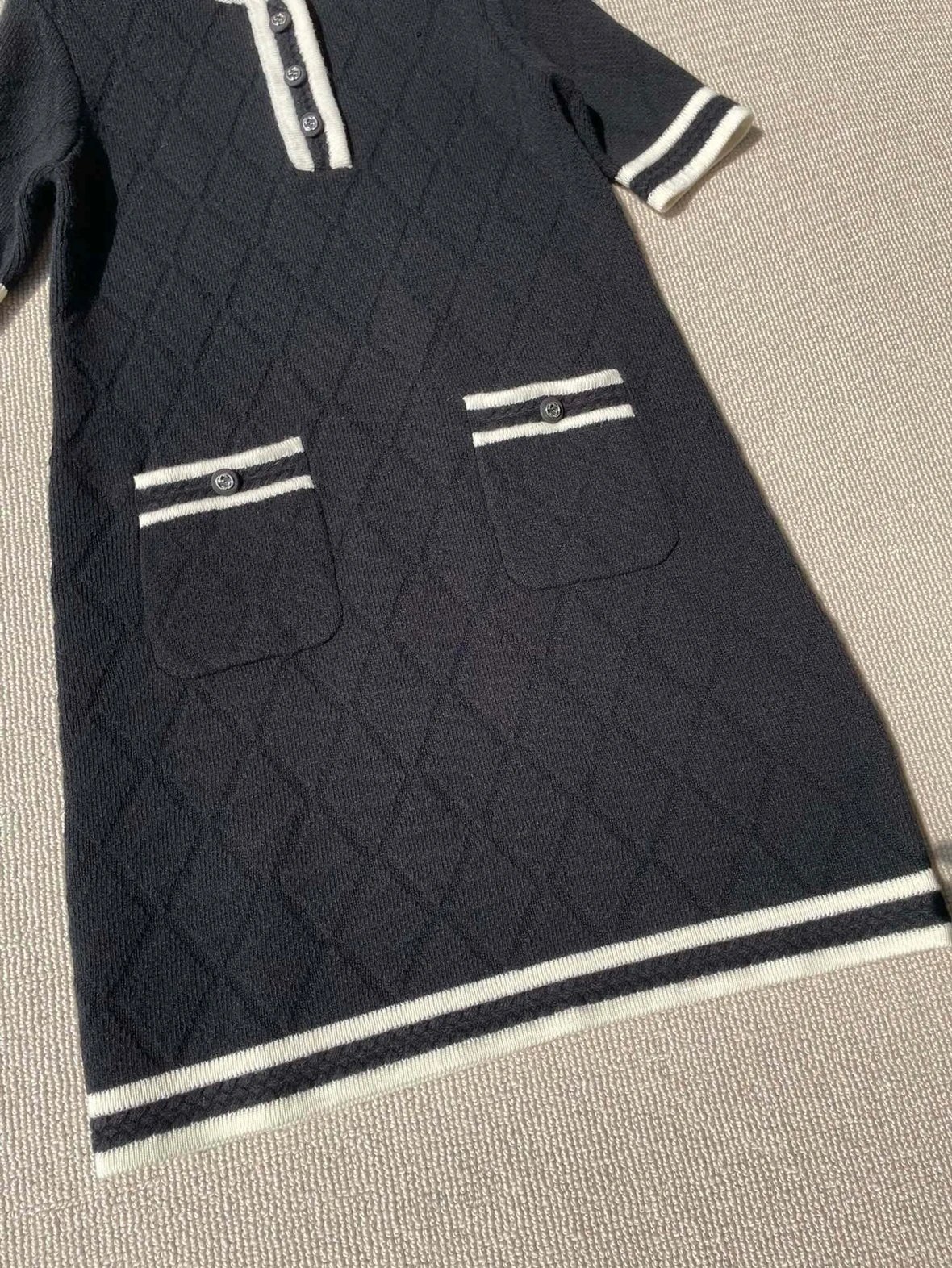 贸易公司订单 zp无标!大G黑白拼接菱格连衣裙 意大利进口羊毛