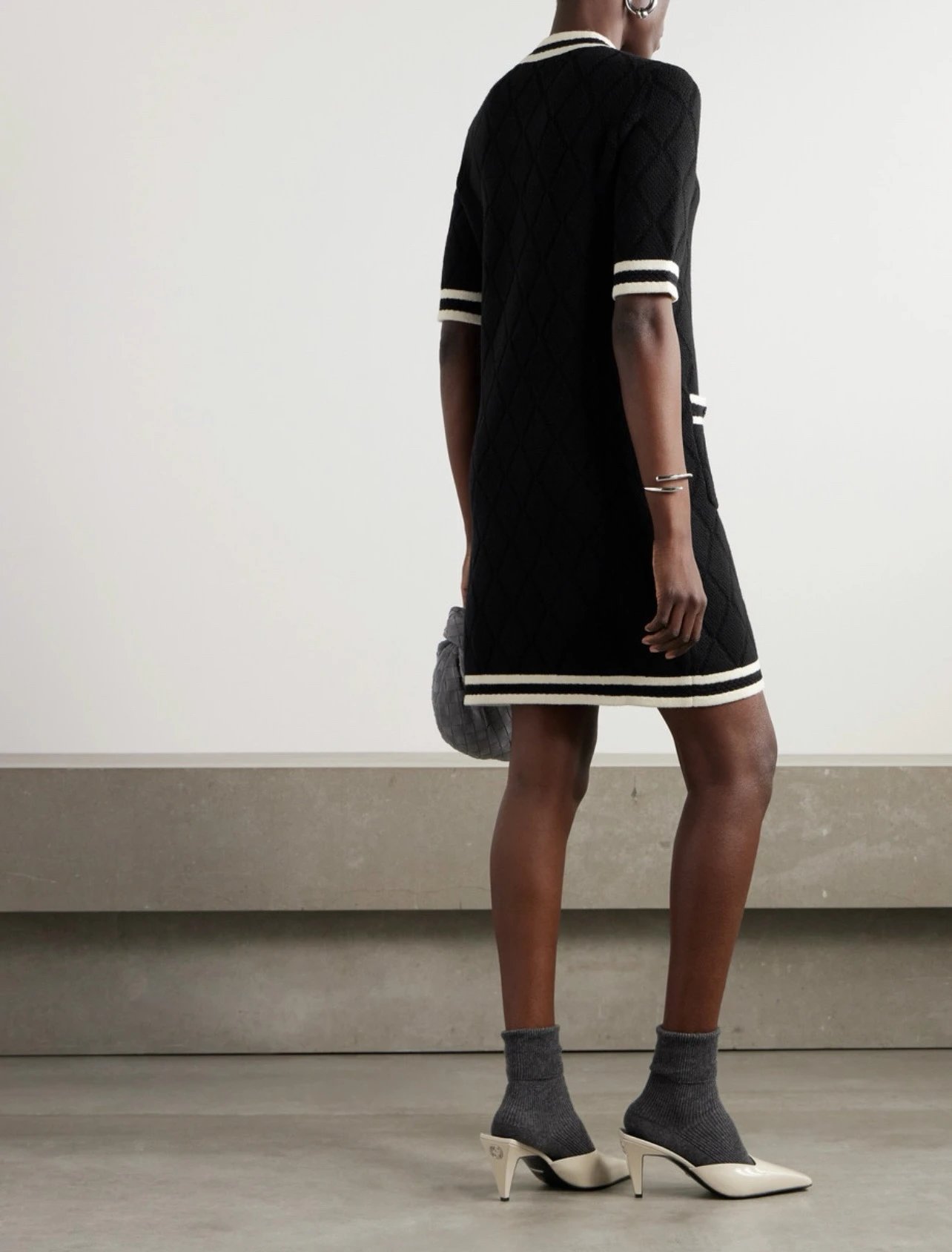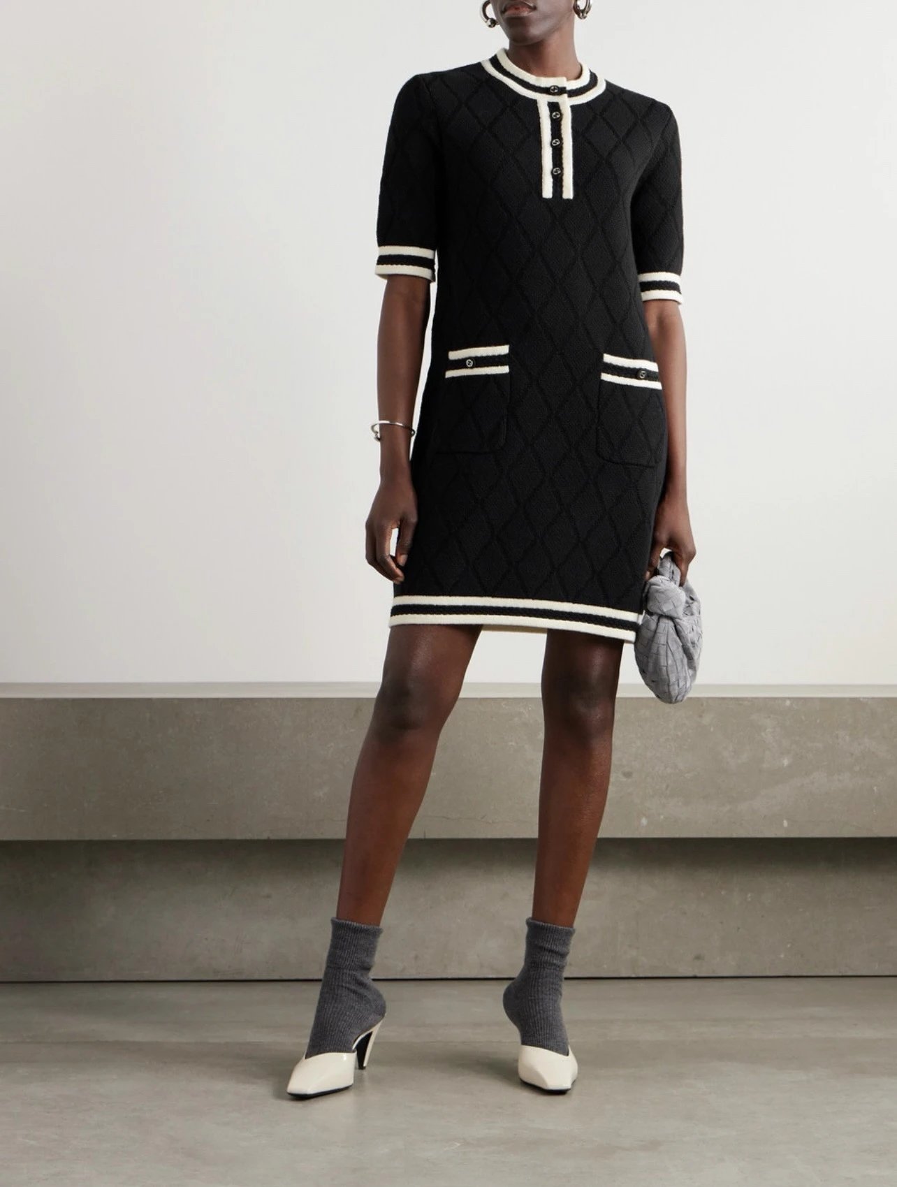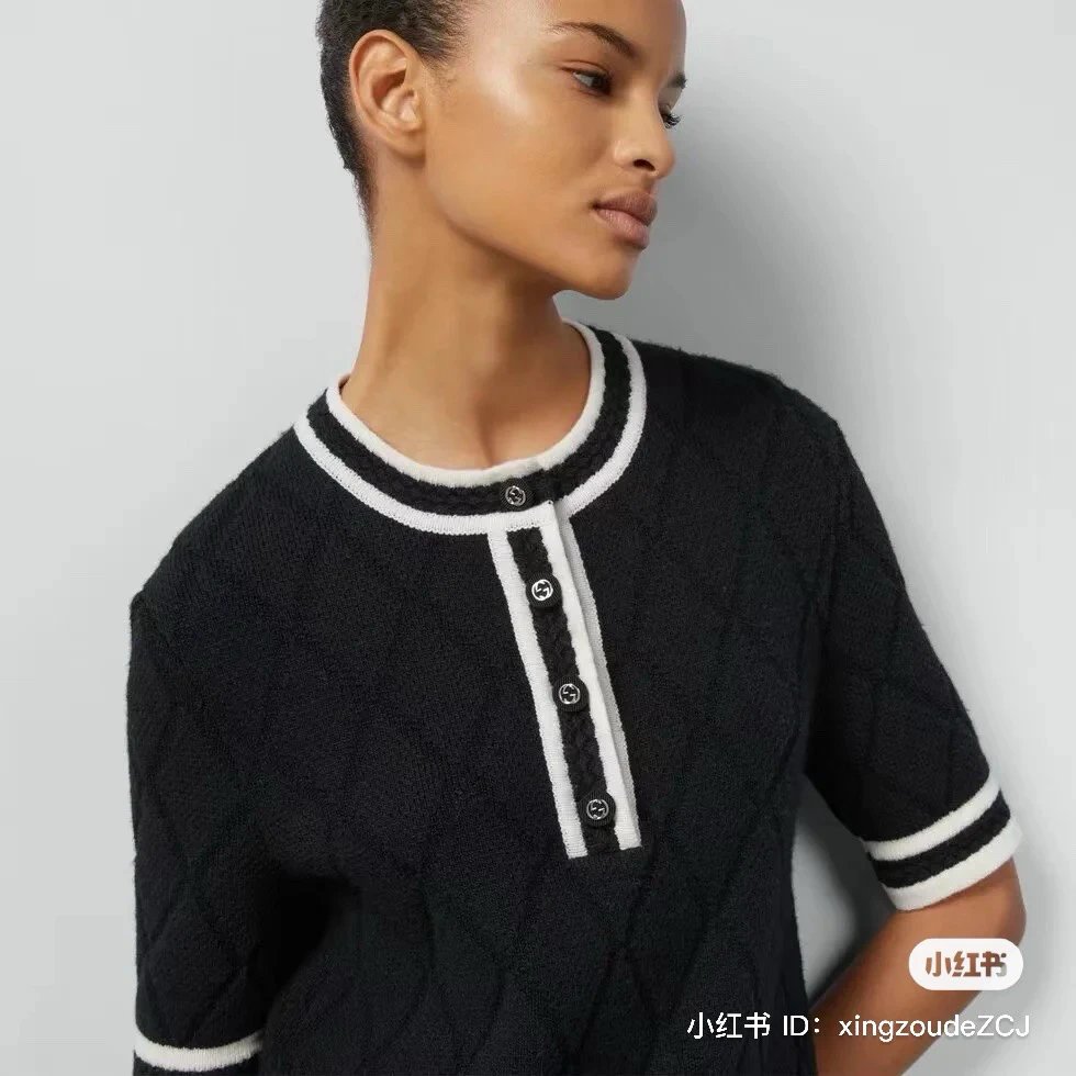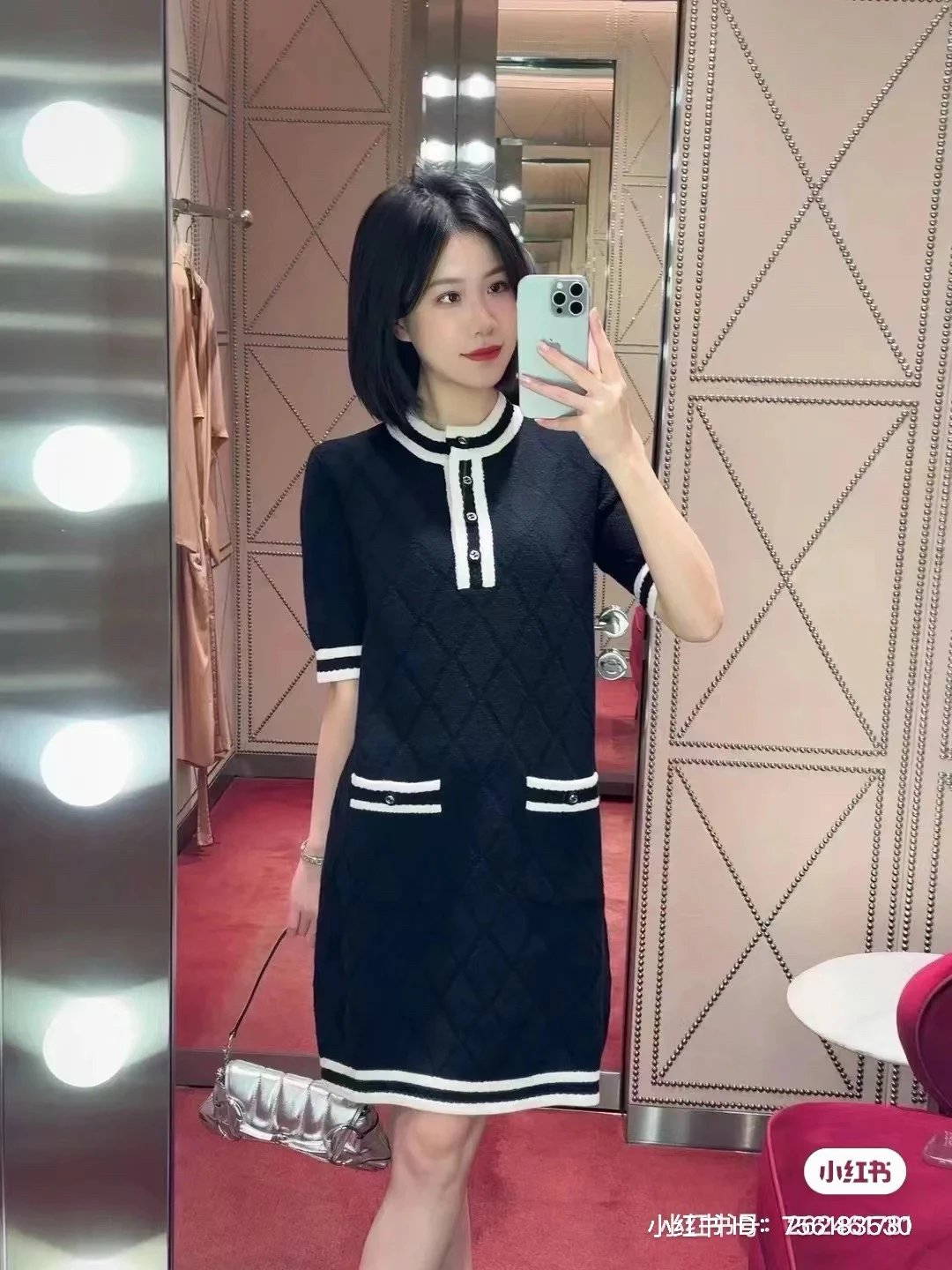 贸易公司订单 zp无标!大G黑白拼接菱格连衣裙 意大利进口羊毛