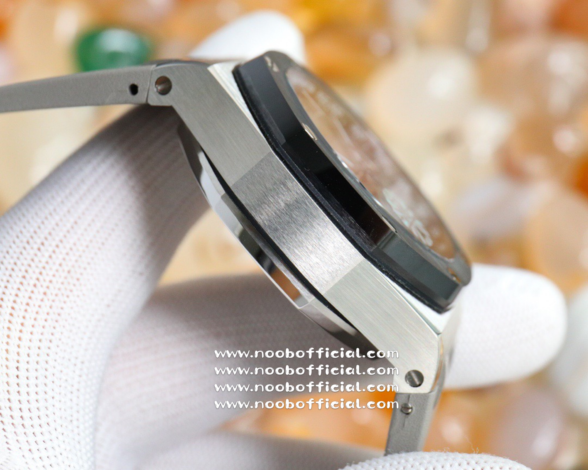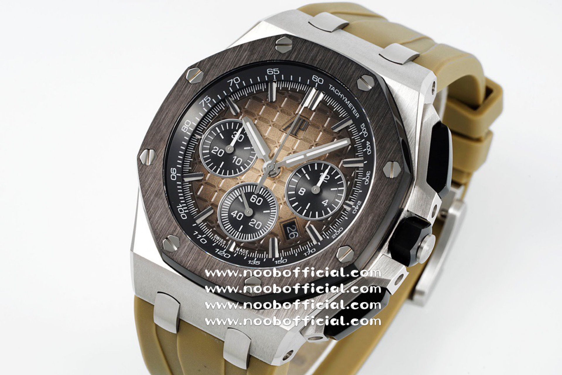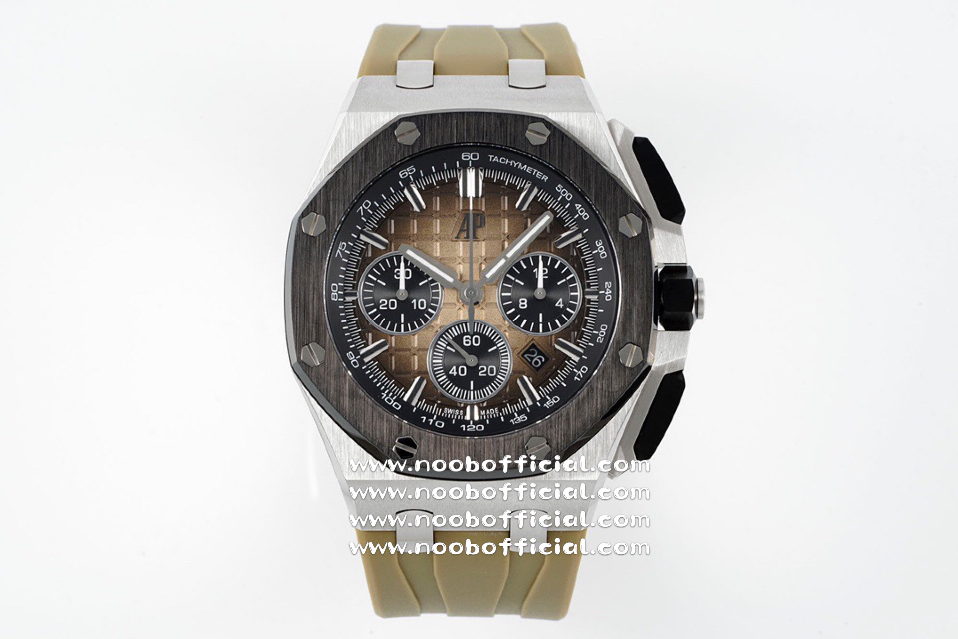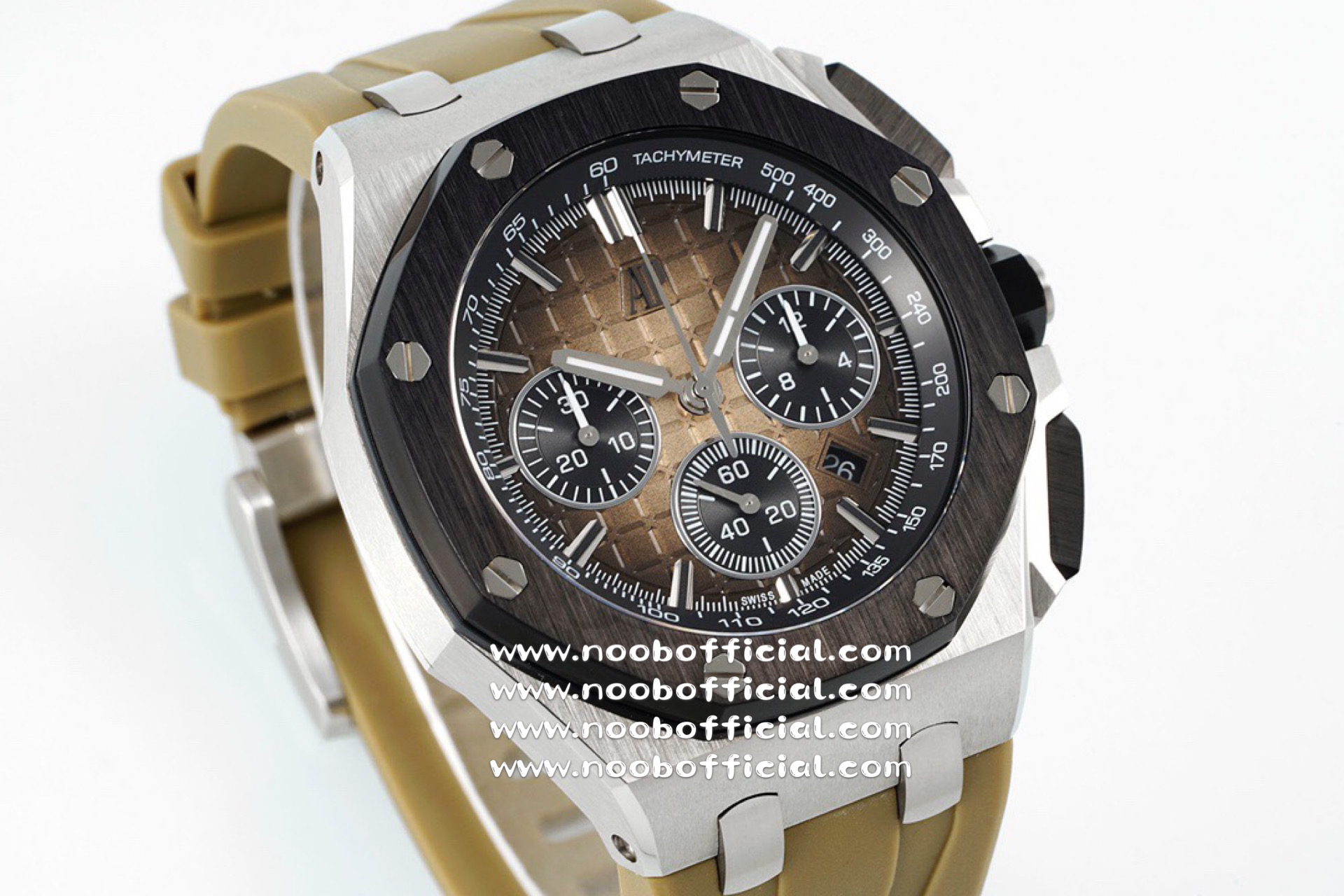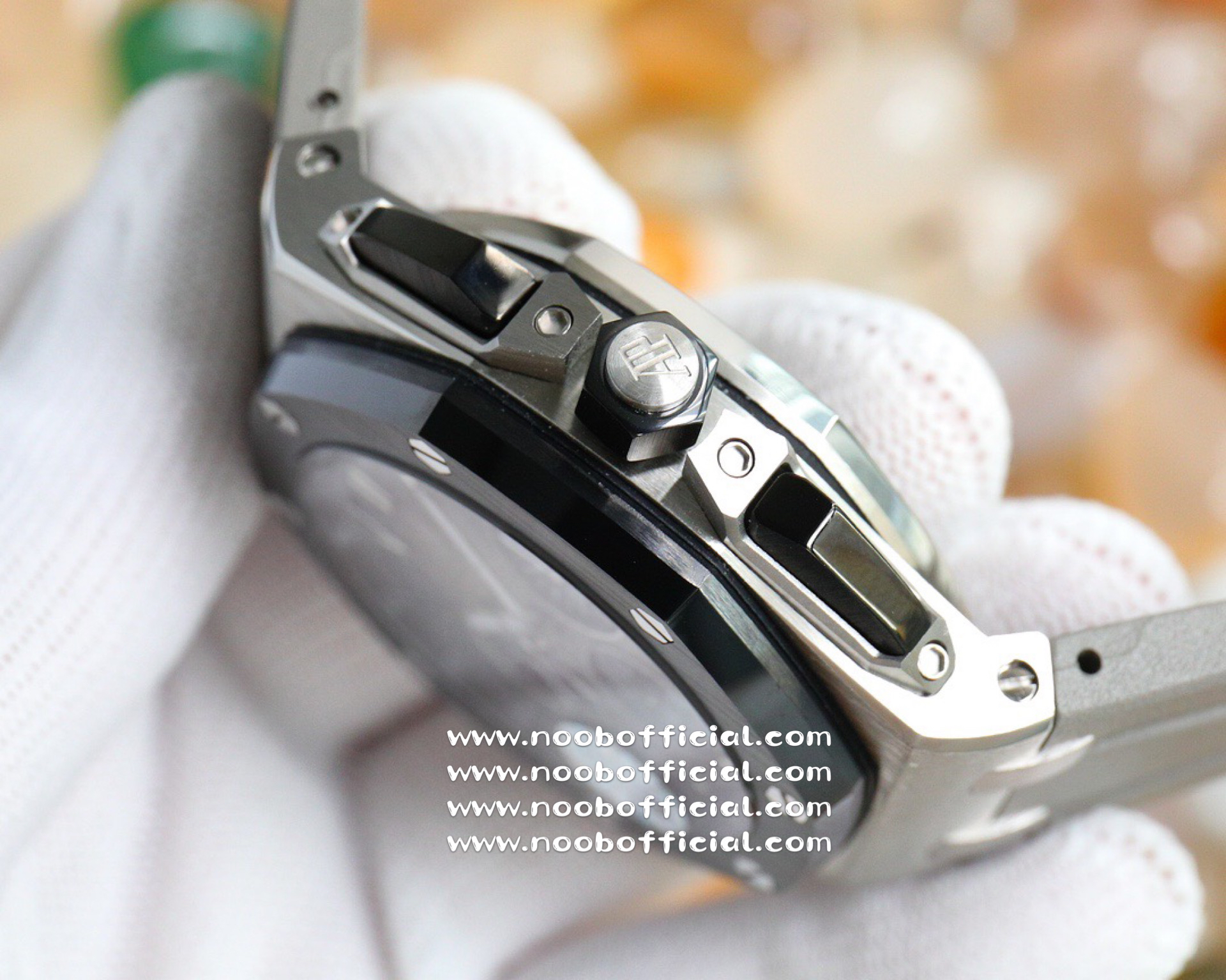 NOOB厂独家开发爱彼皇家橡树离岸系列26420,购入原装1.1打造,全表采用德国最新cnc技术,每个细节都同步原装,表带表扣通用原装技术实现快拆技术可同原装互换,字面采用最新款纵横格纹面,上手霸气豪华,机芯使用最强亚洲版定制的机芯外观复刻原装4401机芯实现正面反面与原装难分雌雄。首批数量有限先到先得。首批颜色分别为,1,玫瑰金熊猫眼,2,最火沙漠黄烟熏盘,3,经典蓝盘白眼,4灰盘蓝眼睛,5,经典百搭白熊猫。
