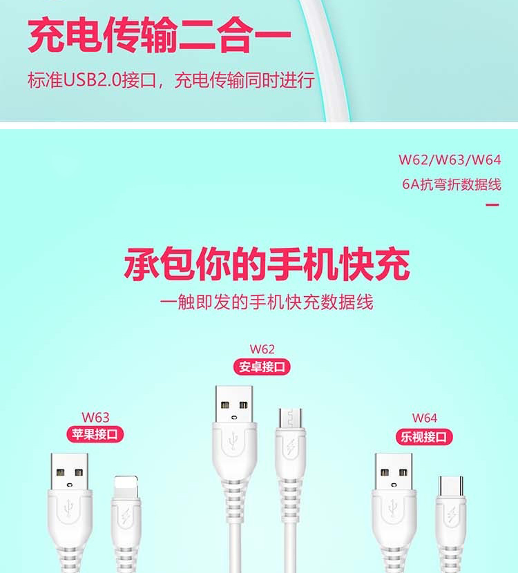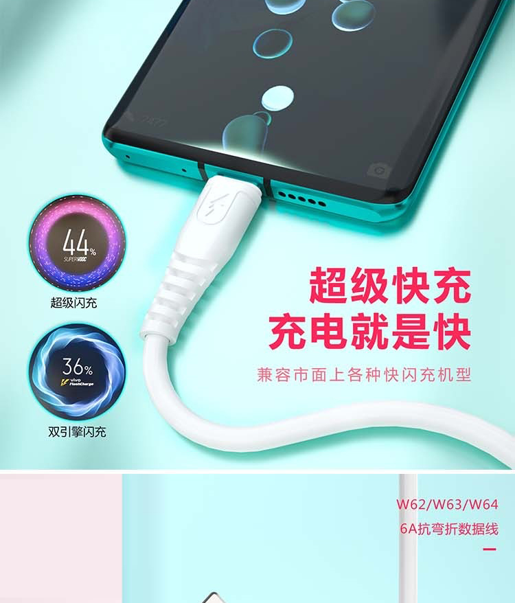 6A安卓数据线高速usb通用充电器线快充闪充适用于OPPO数据线