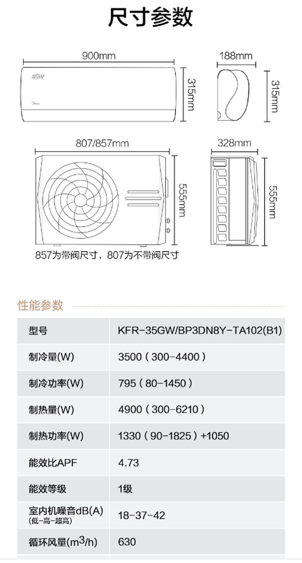 美的(Midea) 大1匹1.5匹空调挂机智能家电 一级能效 舒适星 冷暖变频 家用壁挂式空调