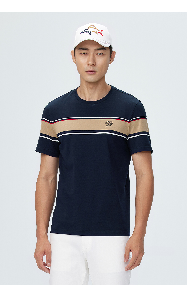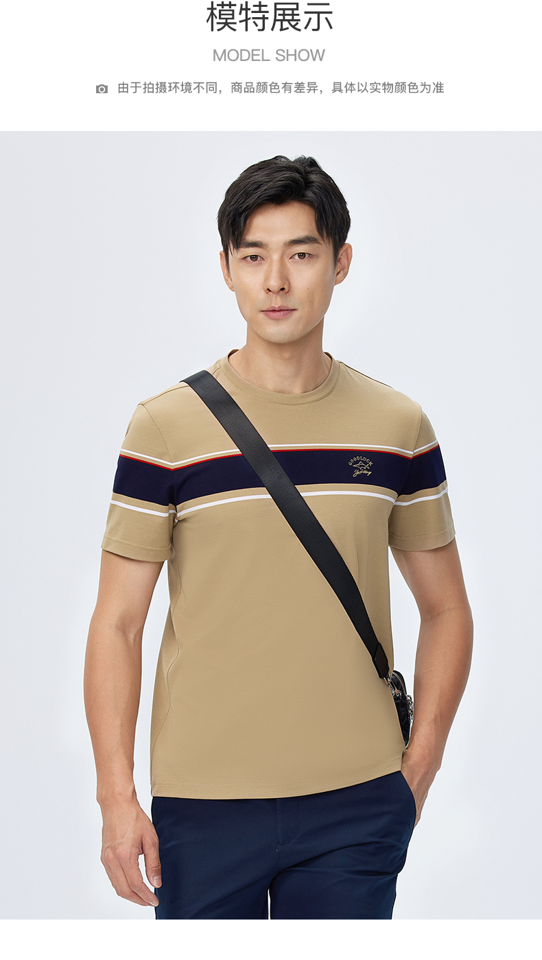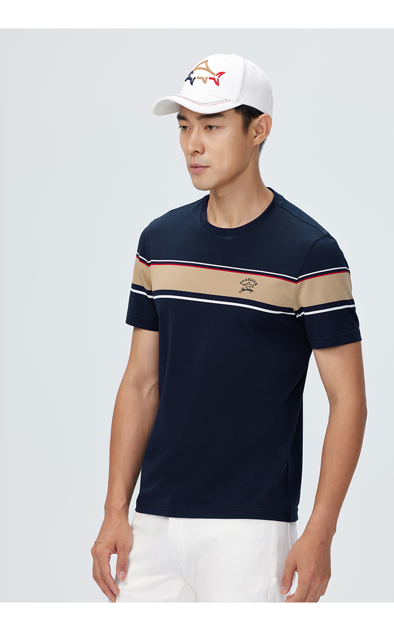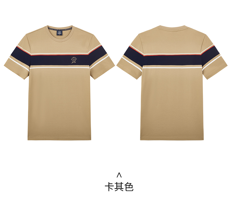 【桑蚕丝】德鲨短袖圆领T恤男2025夏季新款撞色休闲上衣打底衫