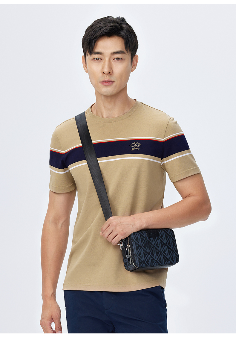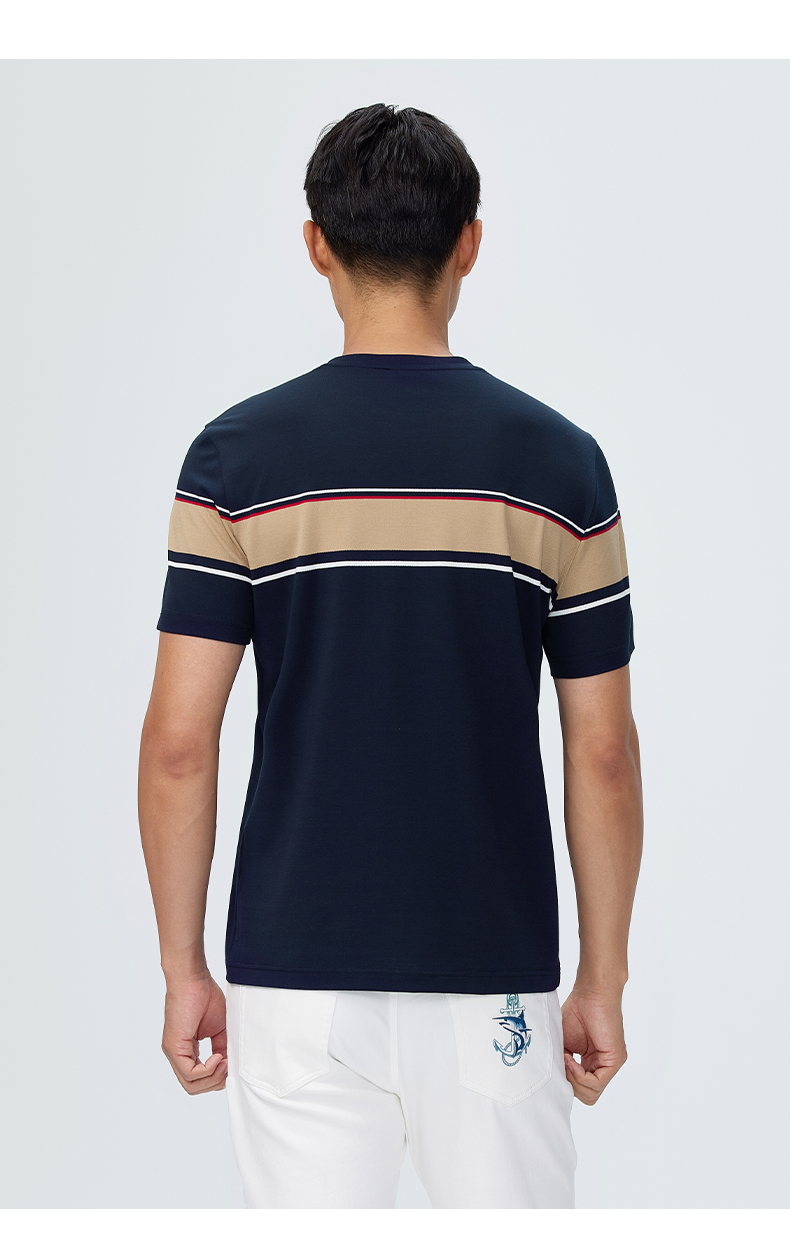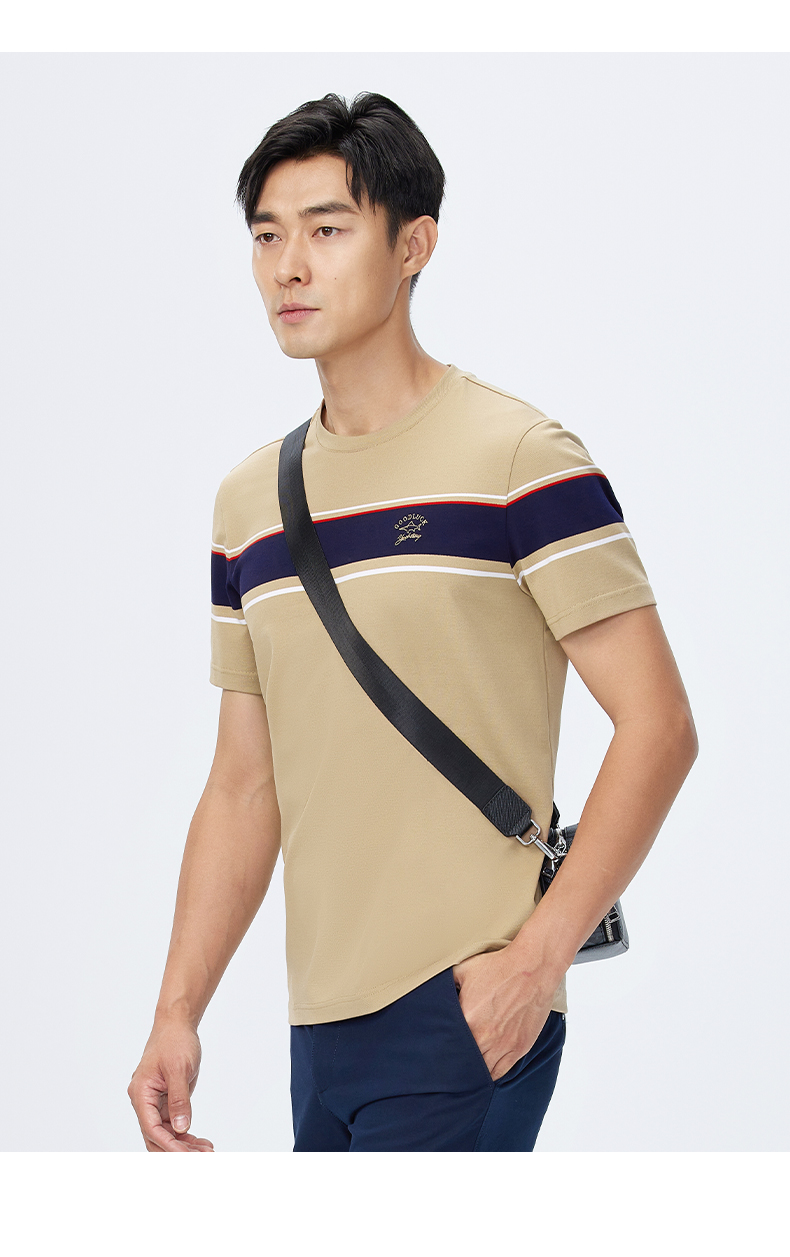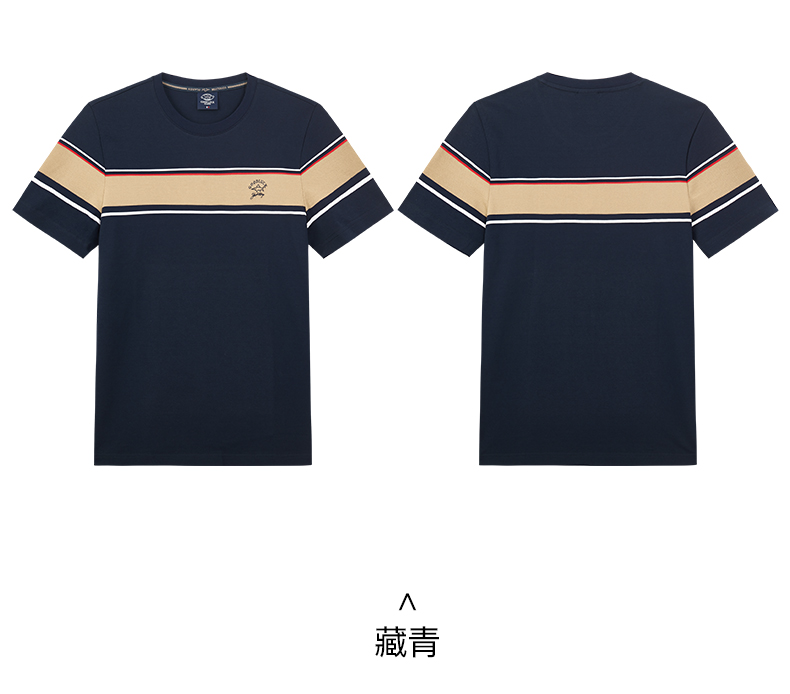 【桑蚕丝】德鲨短袖圆领T恤男2025夏季新款撞色休闲上衣打底衫
