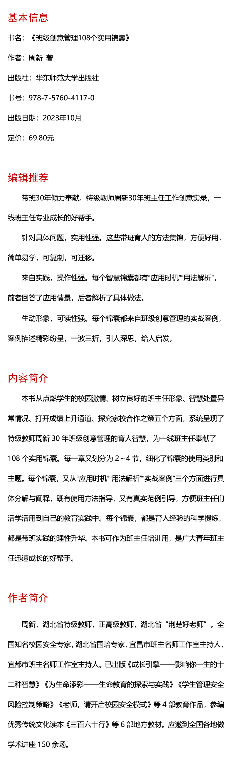 班级创意管理108个实用锦囊 大夏书系 特级教师周新