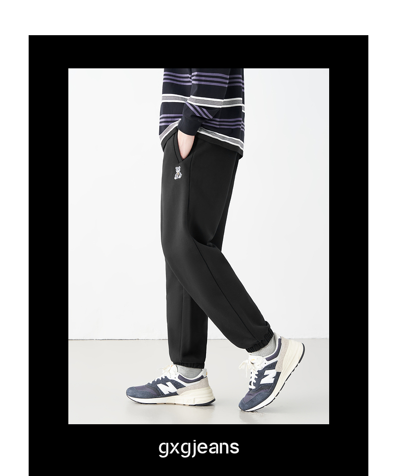 gxg.jeans男装秋冬热卖加绒束脚休闲裤小熊刺绣运动长裤男卫裤11D1020121F