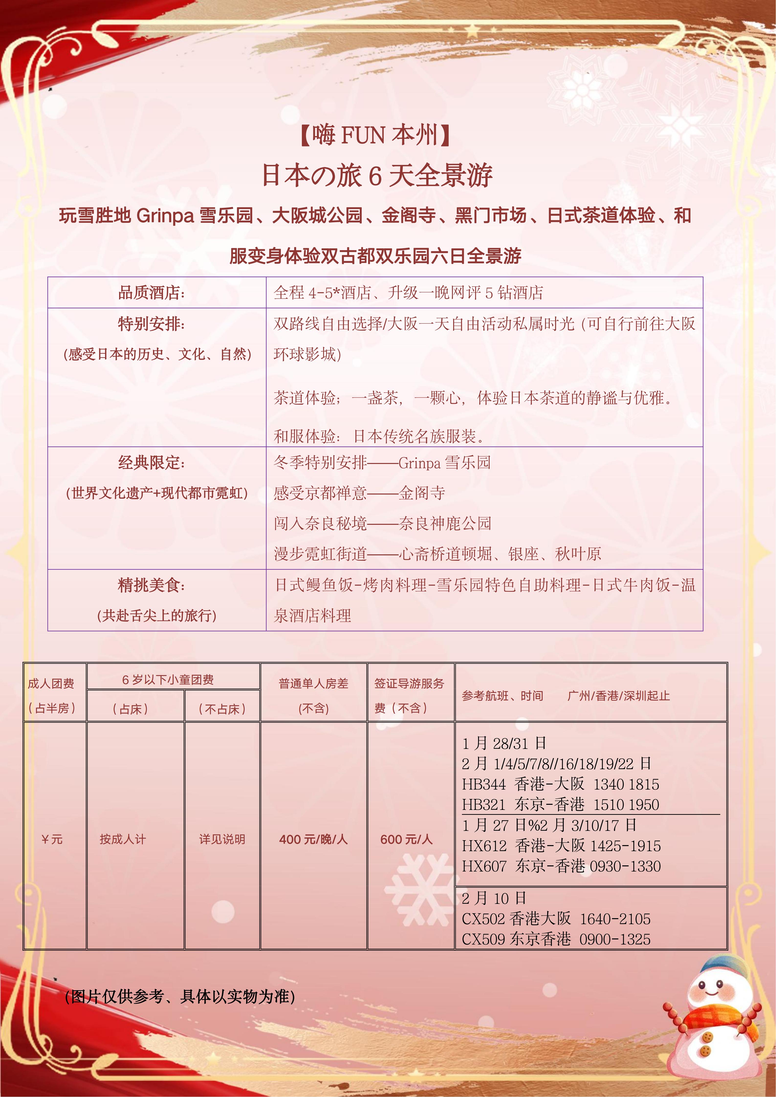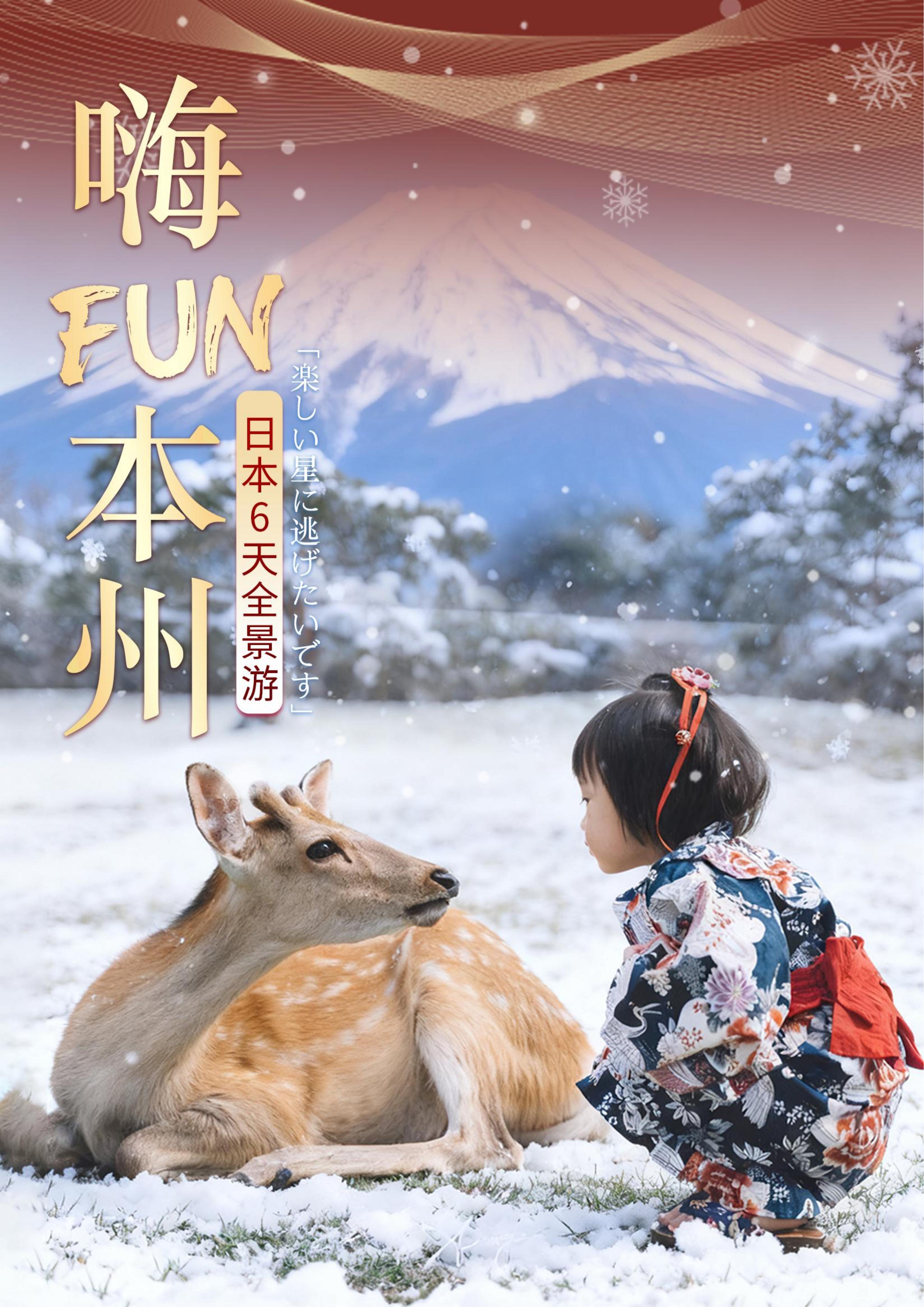 【春节、寒假】<日本本州6天全景游-深圳起止> 大阪可选1天自由活动、富士山Grinpa雪乐园、奈良神鹿公园、山中湖喂天鹅、京都金阁寺、和服变身体验、东京大学、秋叶原、银座