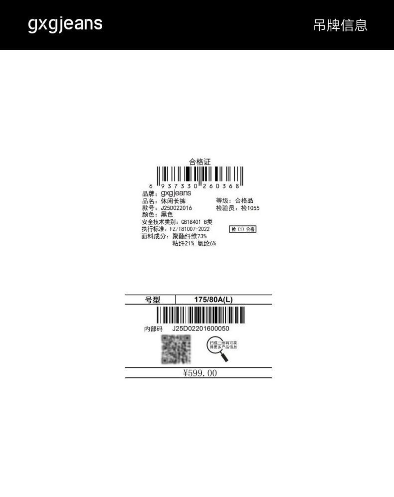 gxg.jeans男装25夏热卖休闲裤垂感薄款明线宽松弯刀裤#J25D022016