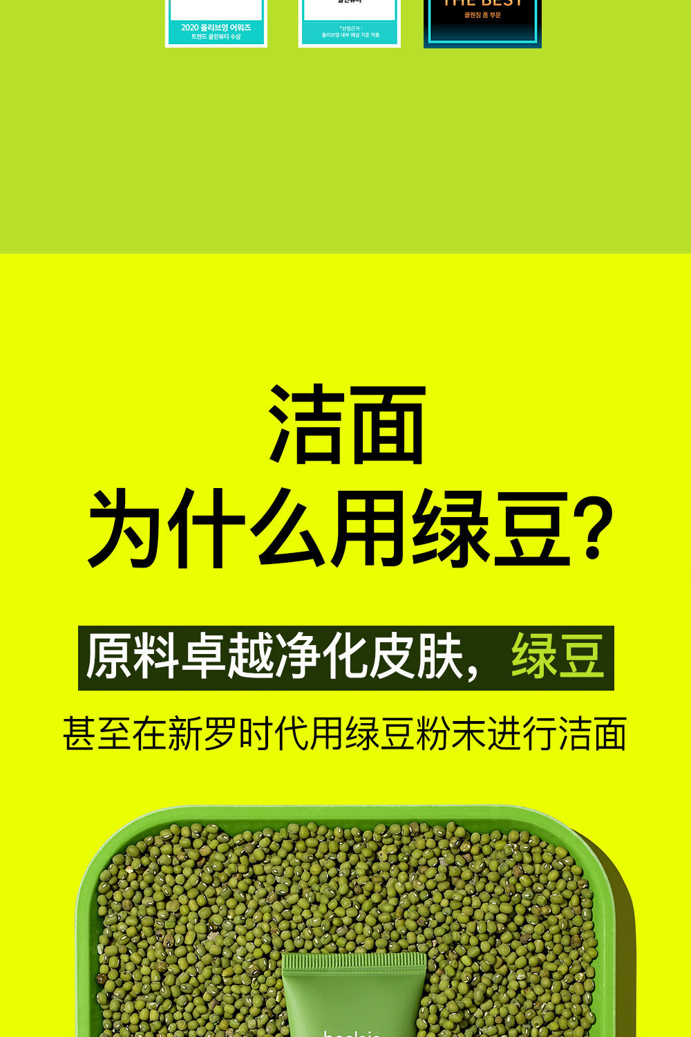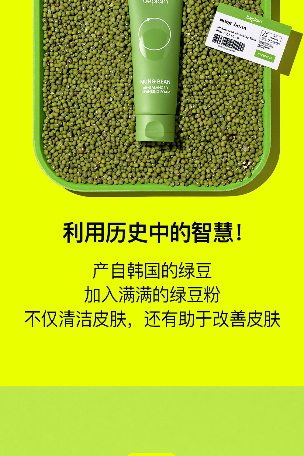 韩国beplain绿豆洗面奶女氨基酸洁面乳碧菲音深层清洁控油痘敏肌80ml