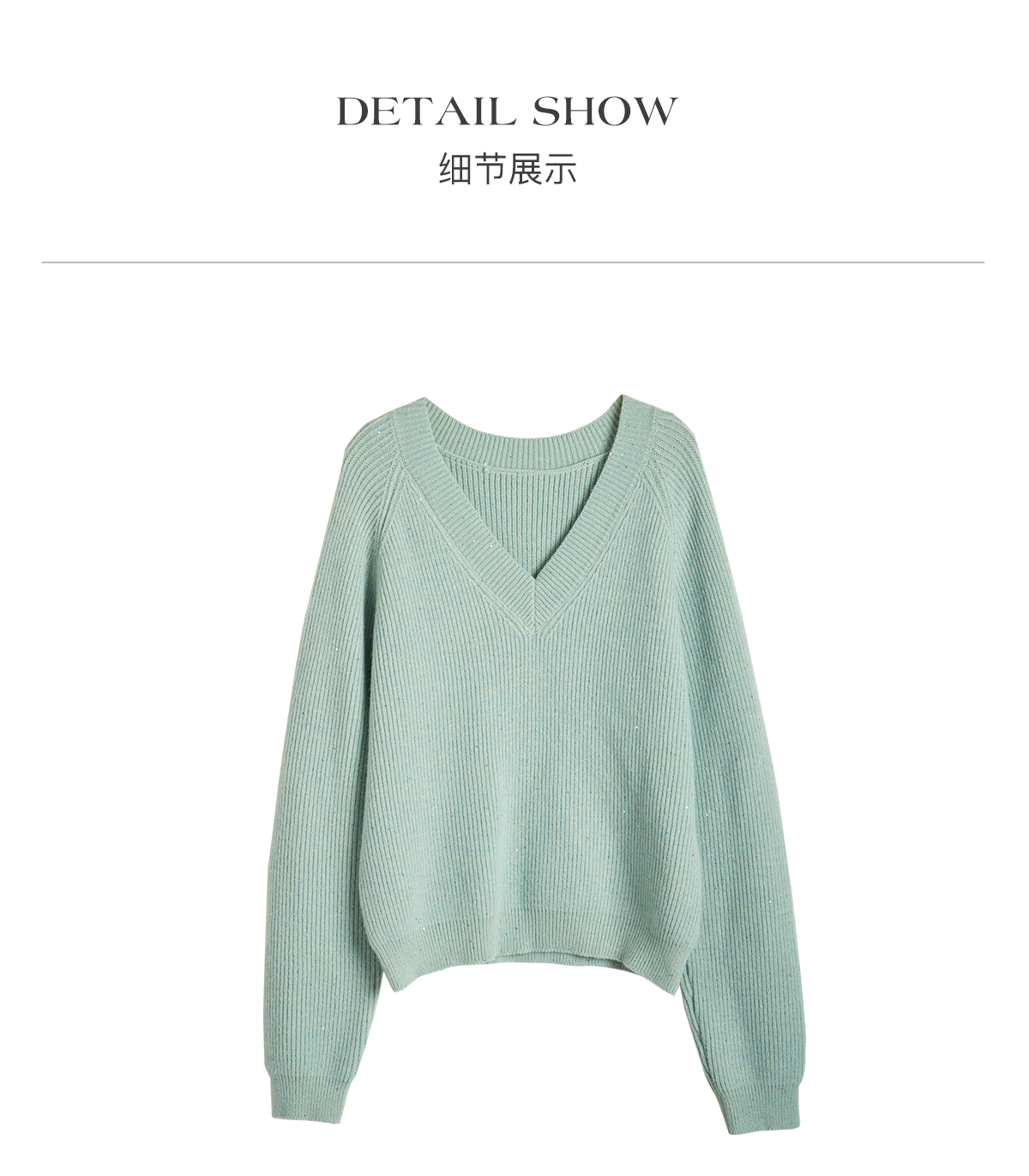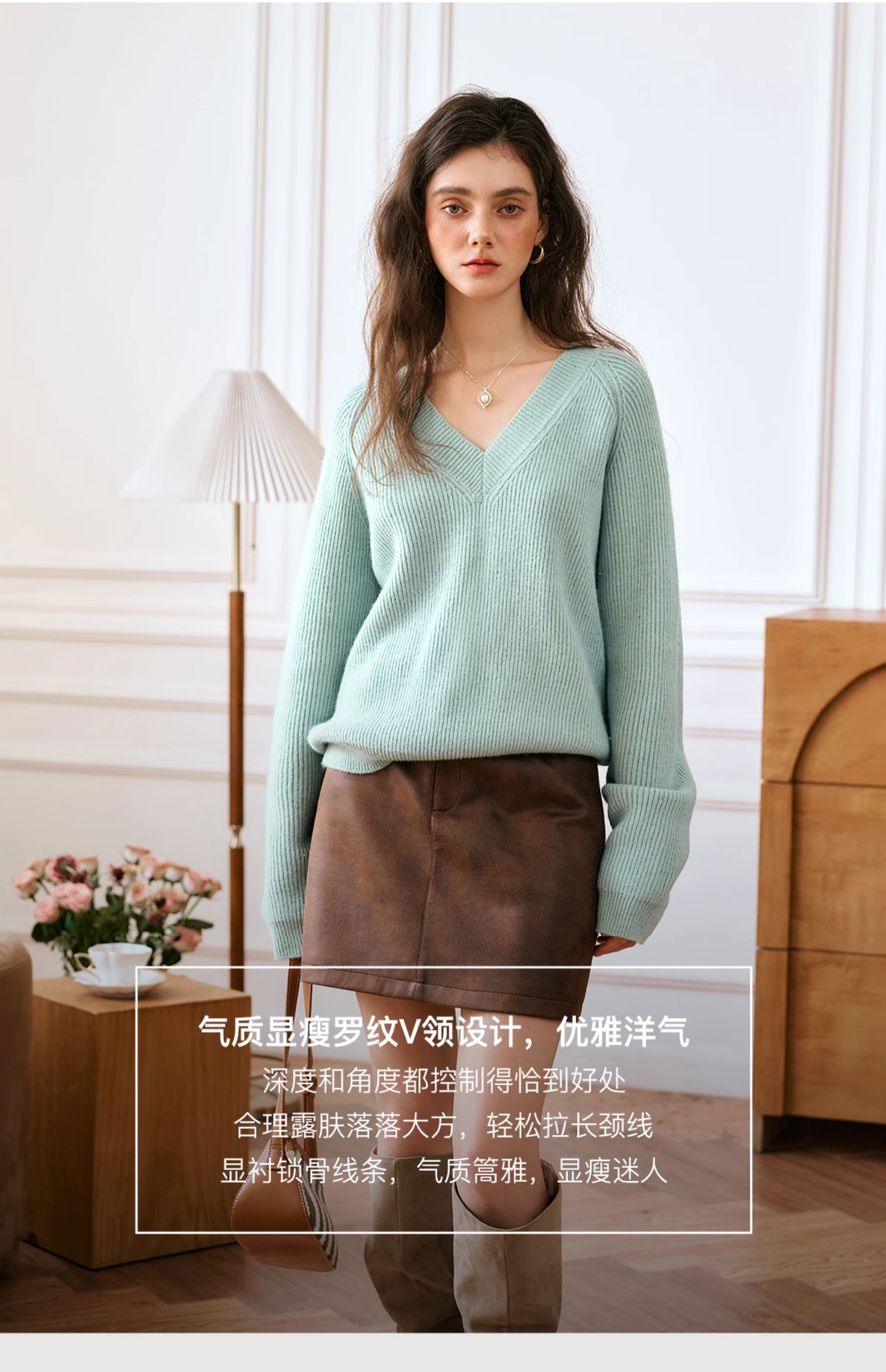 OLrain欧芮儿V领针织衫女秋季2024年新款慵懒风宽松通勤套头上衣