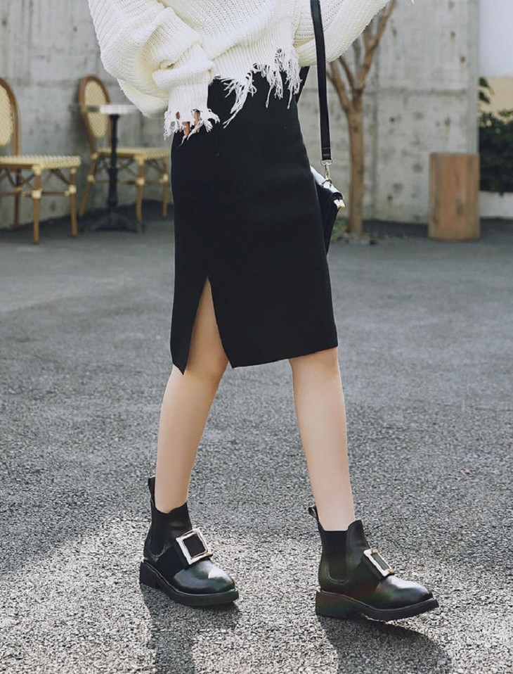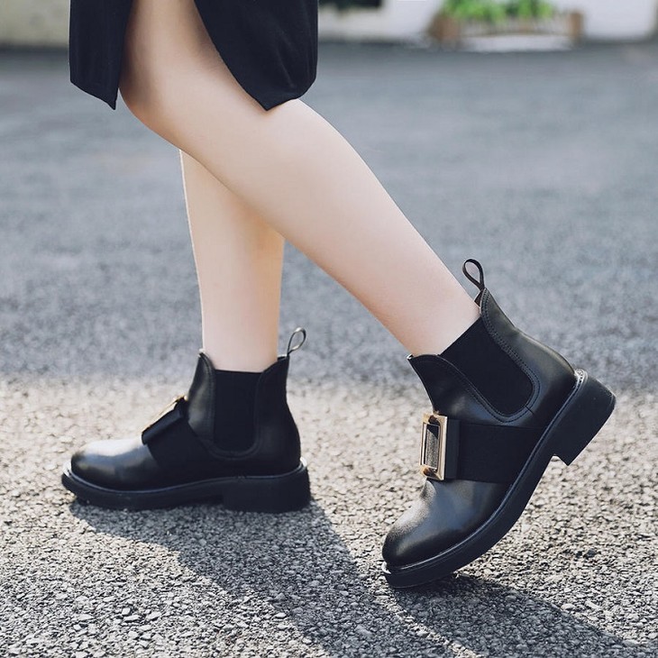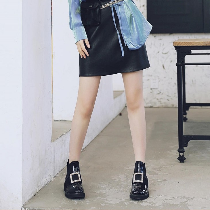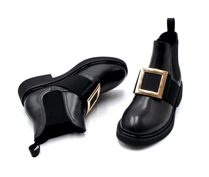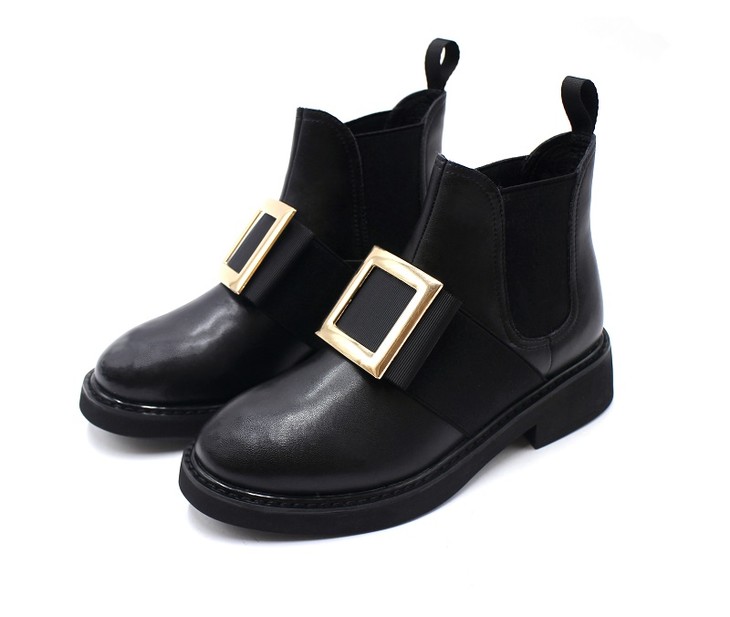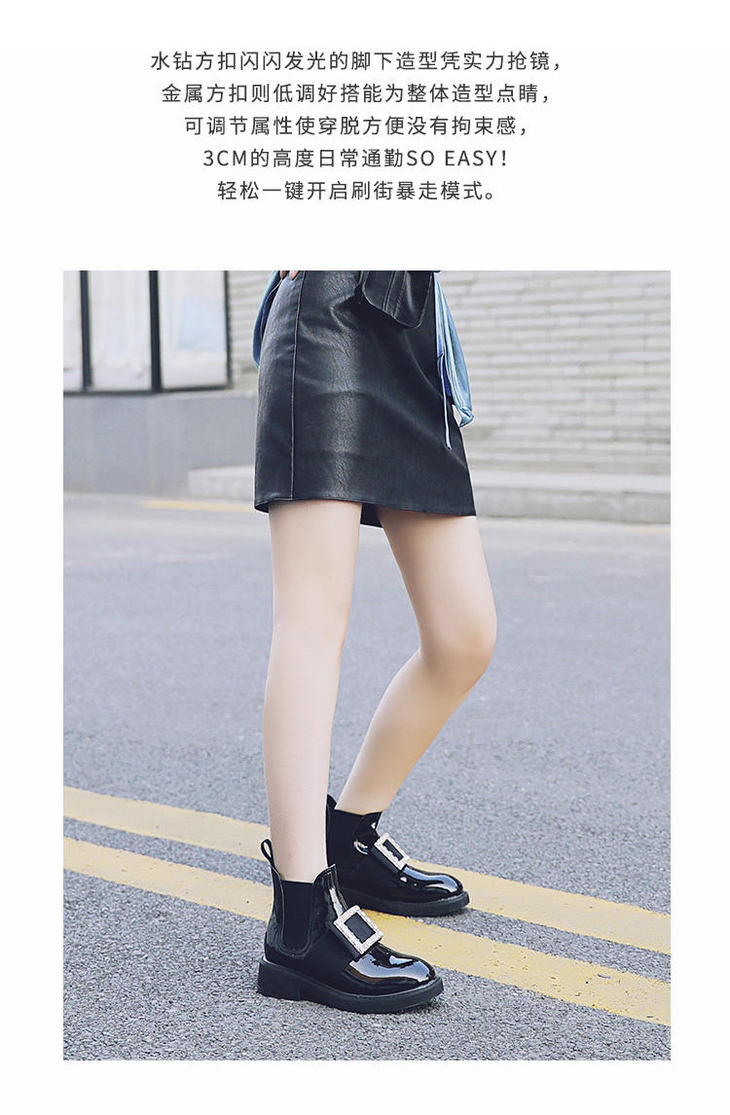 safiya索菲娅方扣加绒切尔西靴冬网红舒适粗跟女靴SF94118227