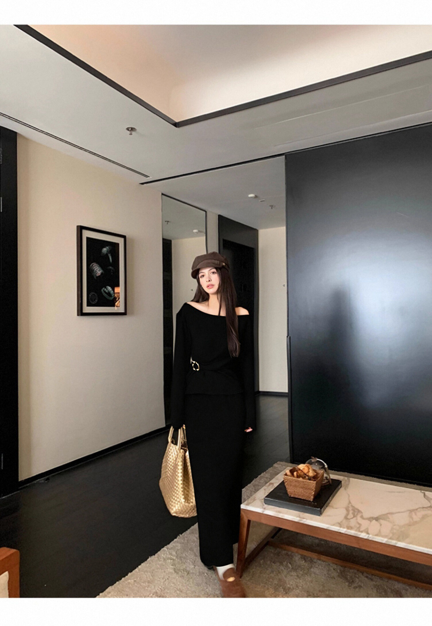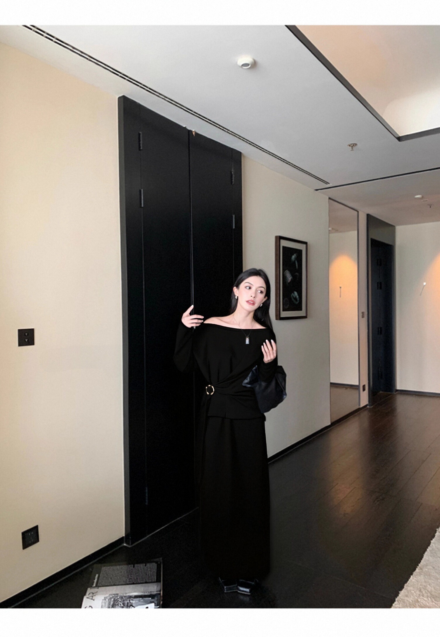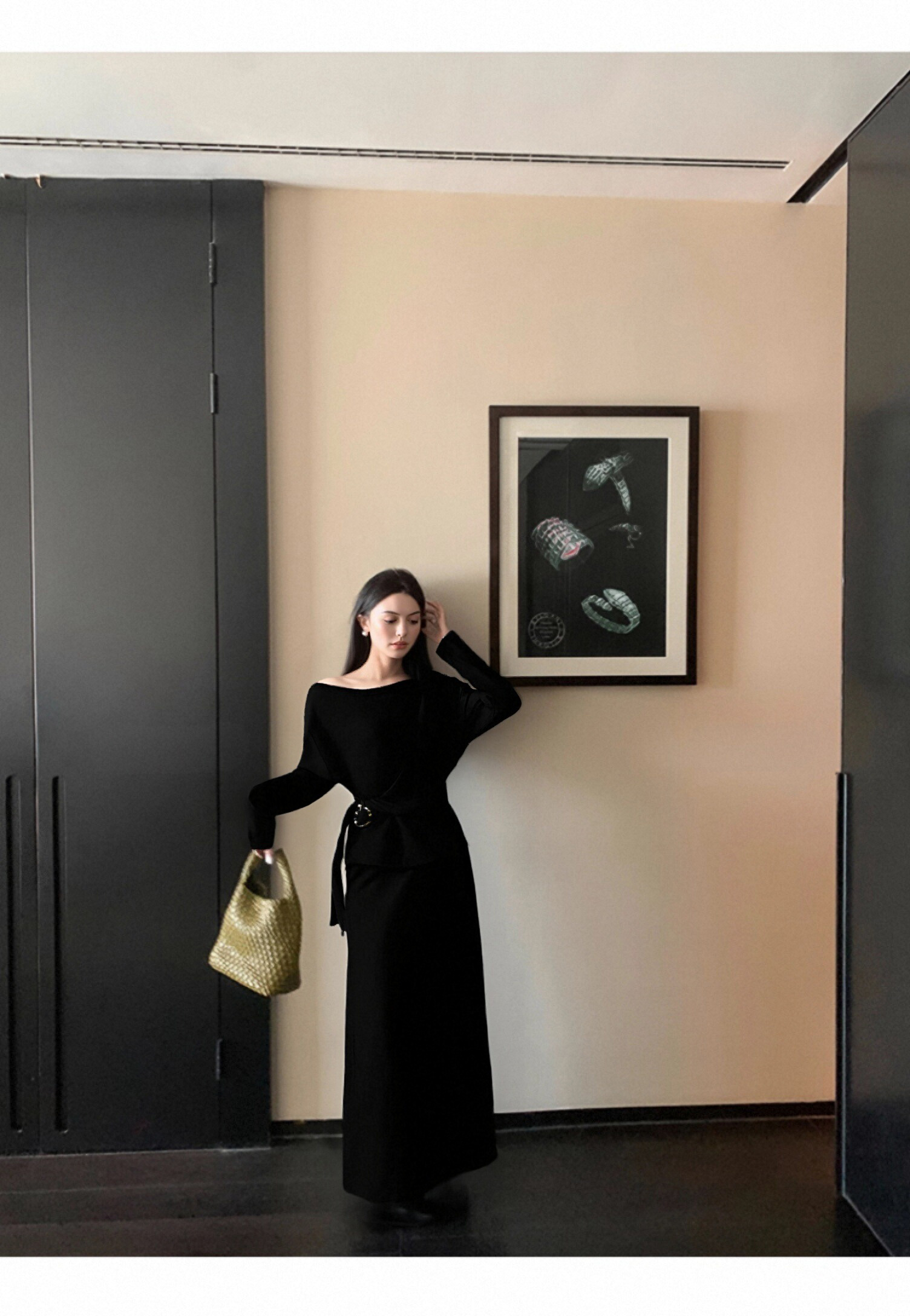 欧芮儿2025新款冬季黑色针织裙类套装女