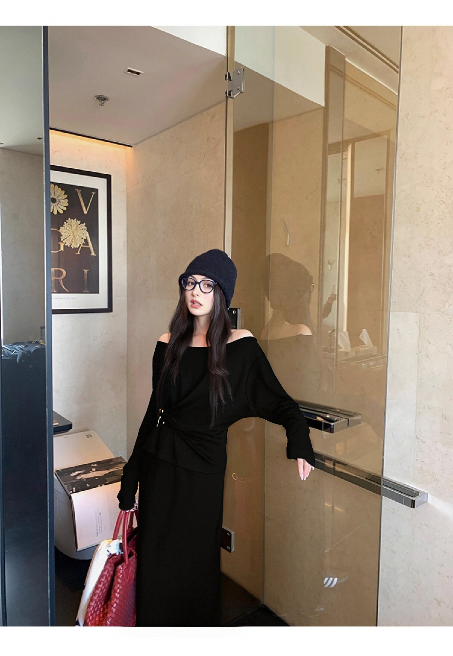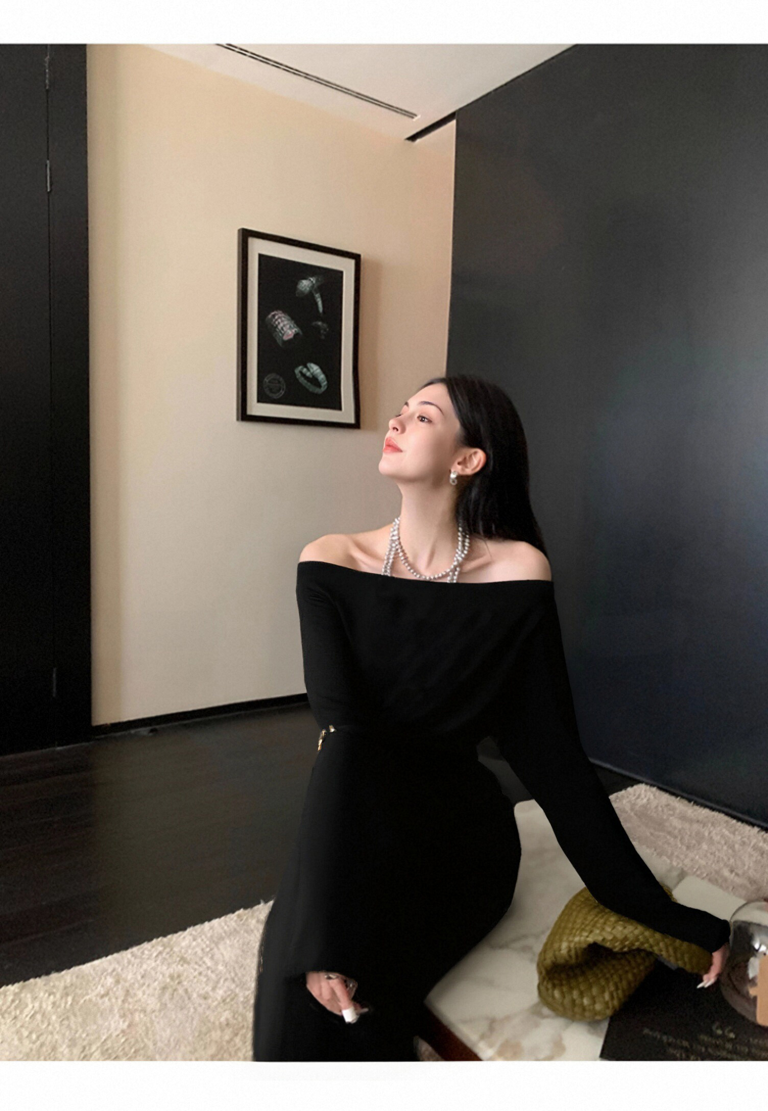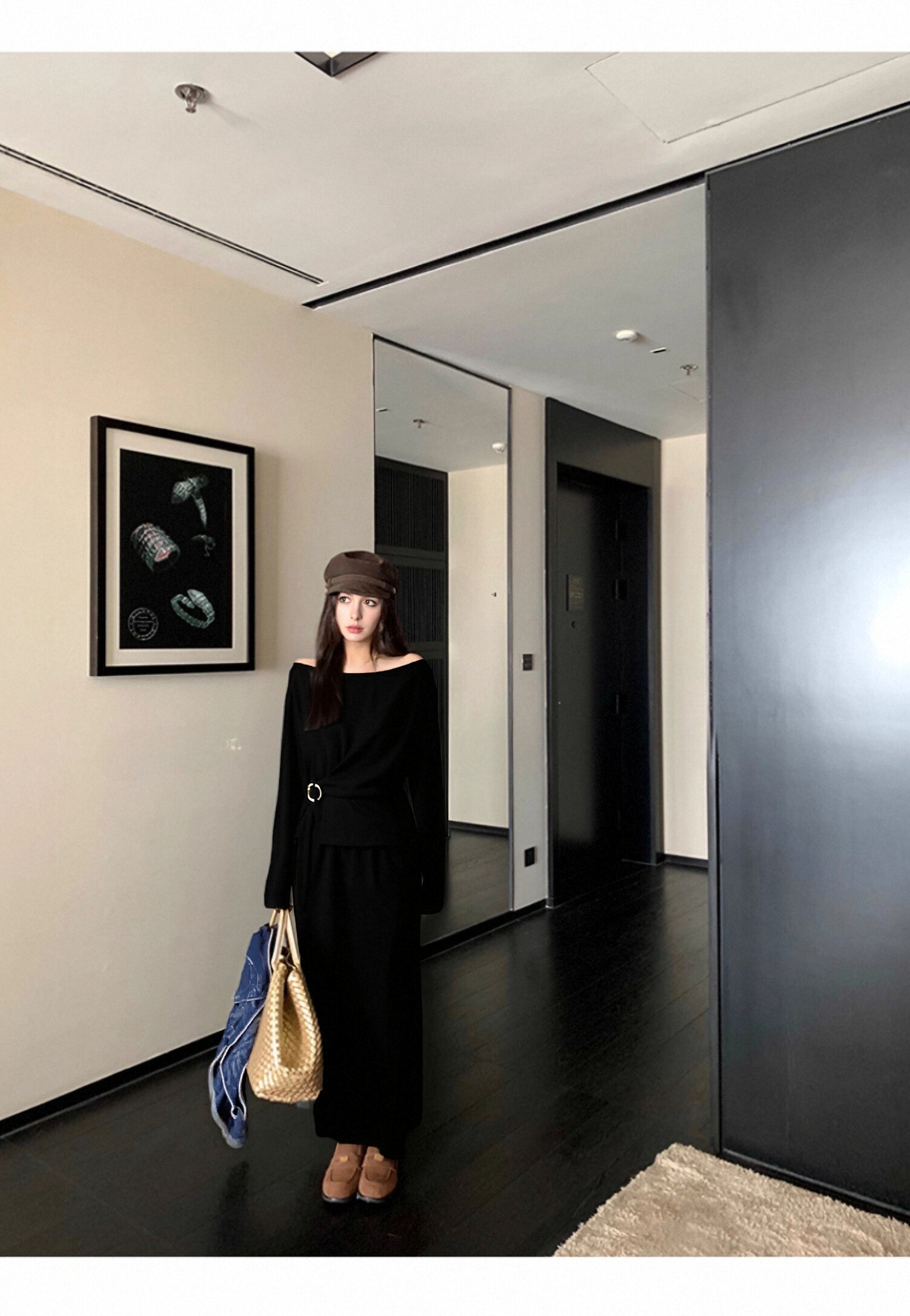 欧芮儿2025新款冬季黑色针织裙类套装女