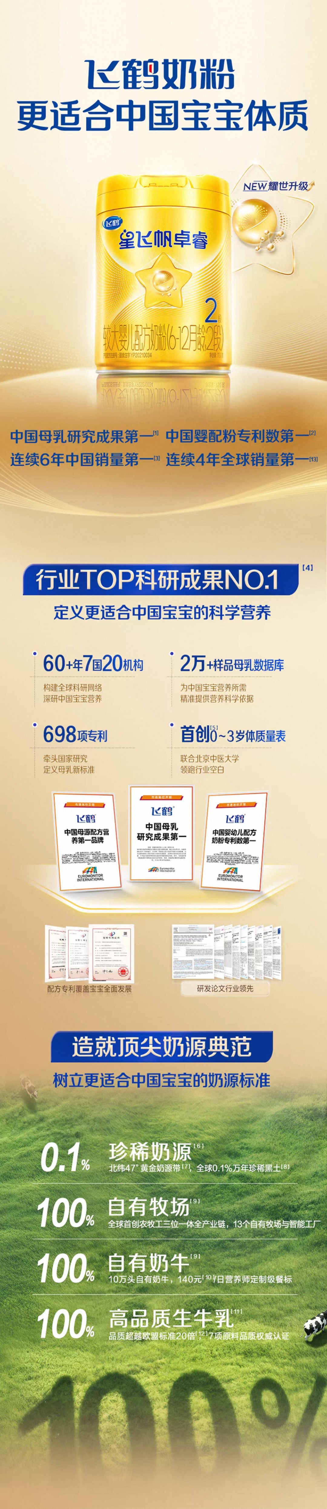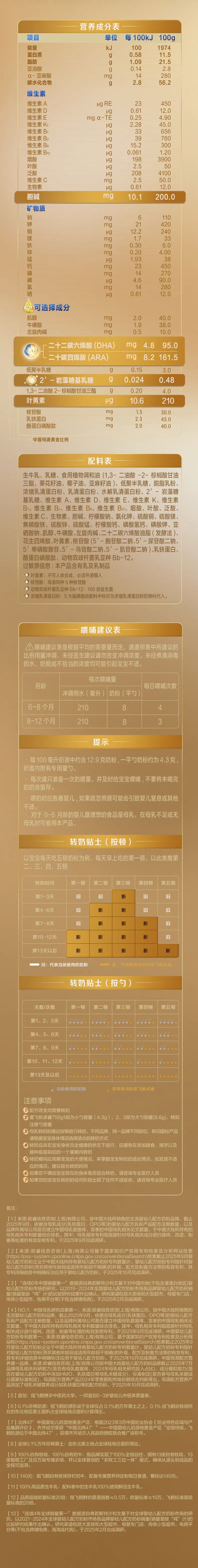 飞鹤星飞帆卓睿较大婴幼儿配方奶粉(6-12个月,2段)750g*6罐