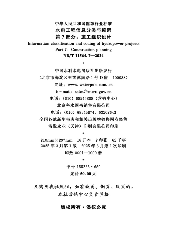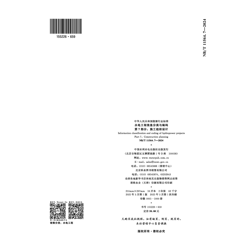 水电工程信息分类与编码第7部分:施工组织设计(NB/T 11564.7—2024)