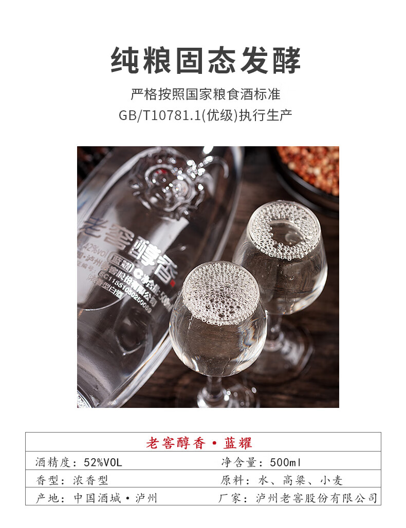 泸州老窖 老窖醇香蓝耀酒 42度浓香型白酒500ml