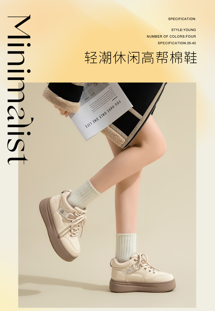 ZHR棉鞋女2024春季新款韩版潮流百搭加绒加厚轻潮高帮保暖休闲鞋