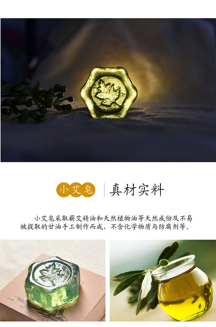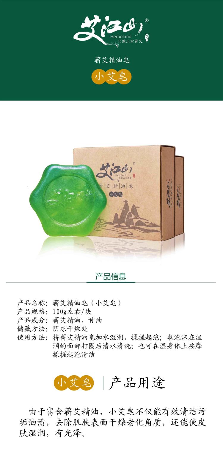 艾江山 蕲艾精油皂-小艾皂 深度清洁肌肤 滋润保湿 天然植物及甘油手工制作 2块装