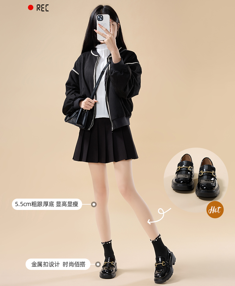 回力乐福鞋女鞋2025夏季新款jk单鞋英伦风玛丽珍黑色厚底小皮鞋女WXP(WZ)-1520