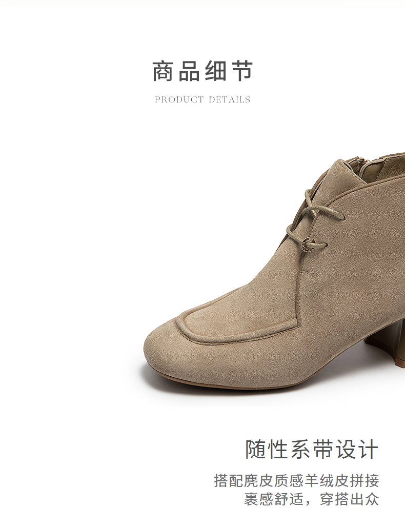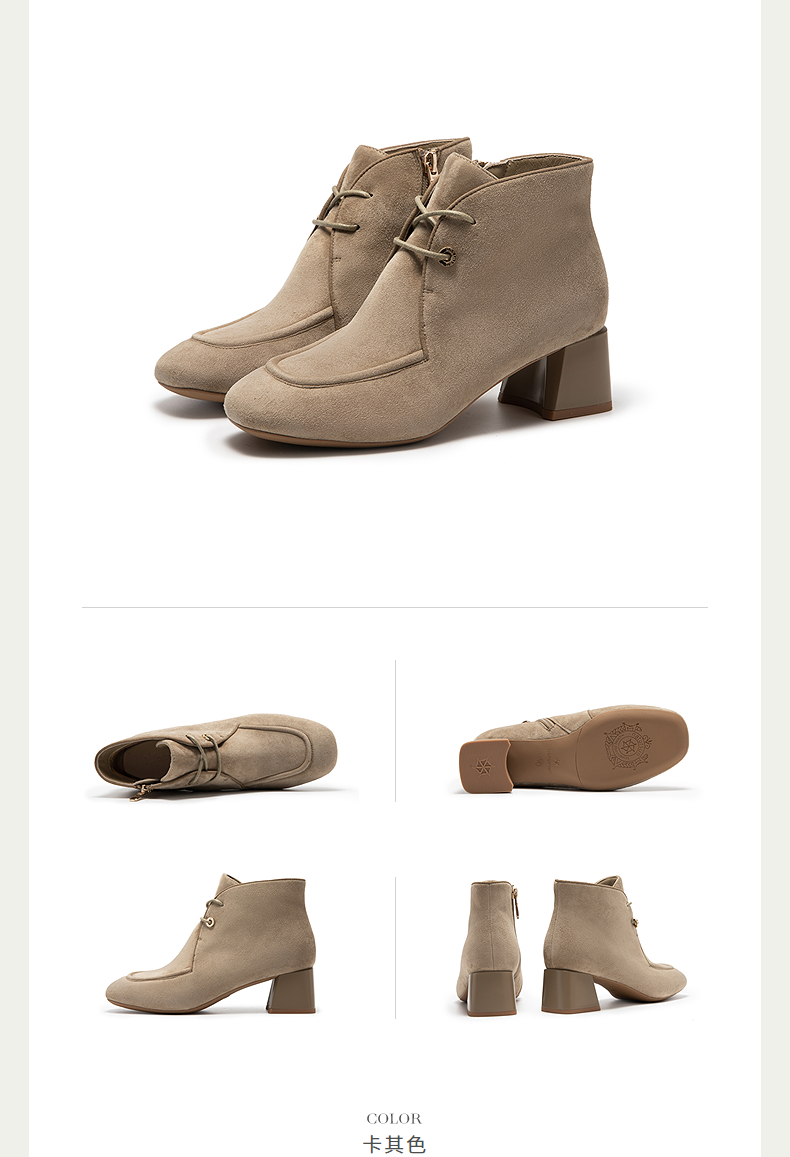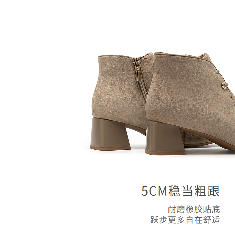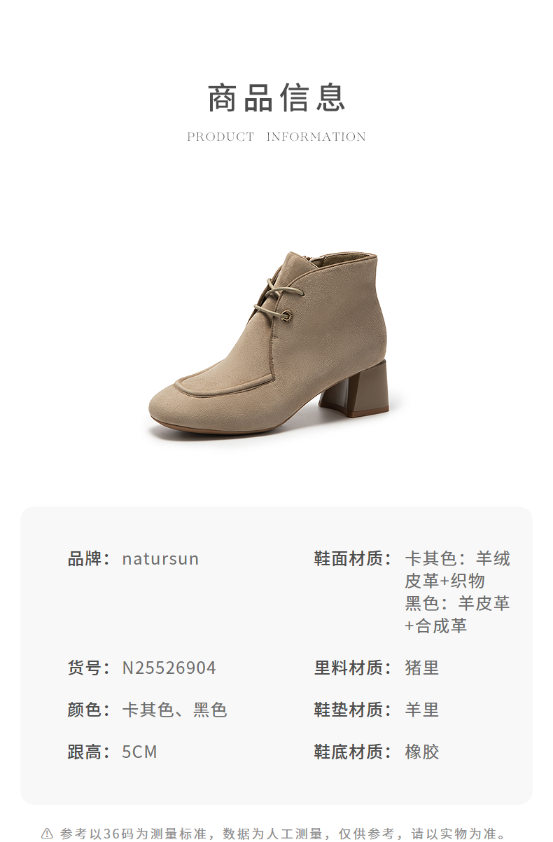 natursun英伦风粗跟时装靴女高跟瘦瘦靴舒适短筒靴子N25526904