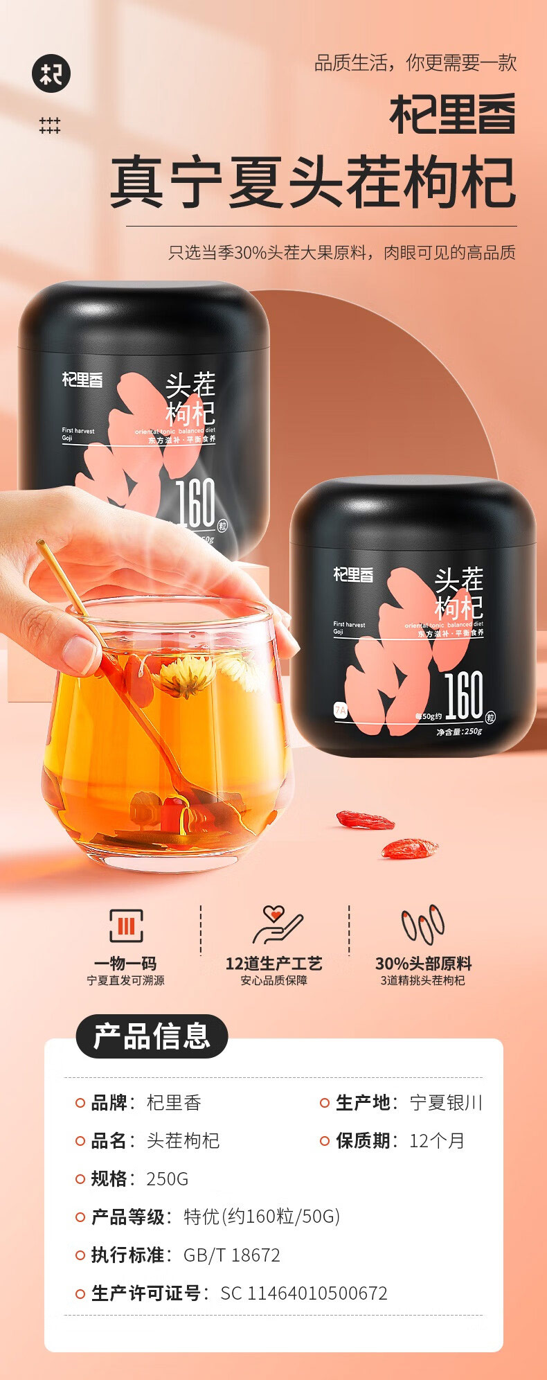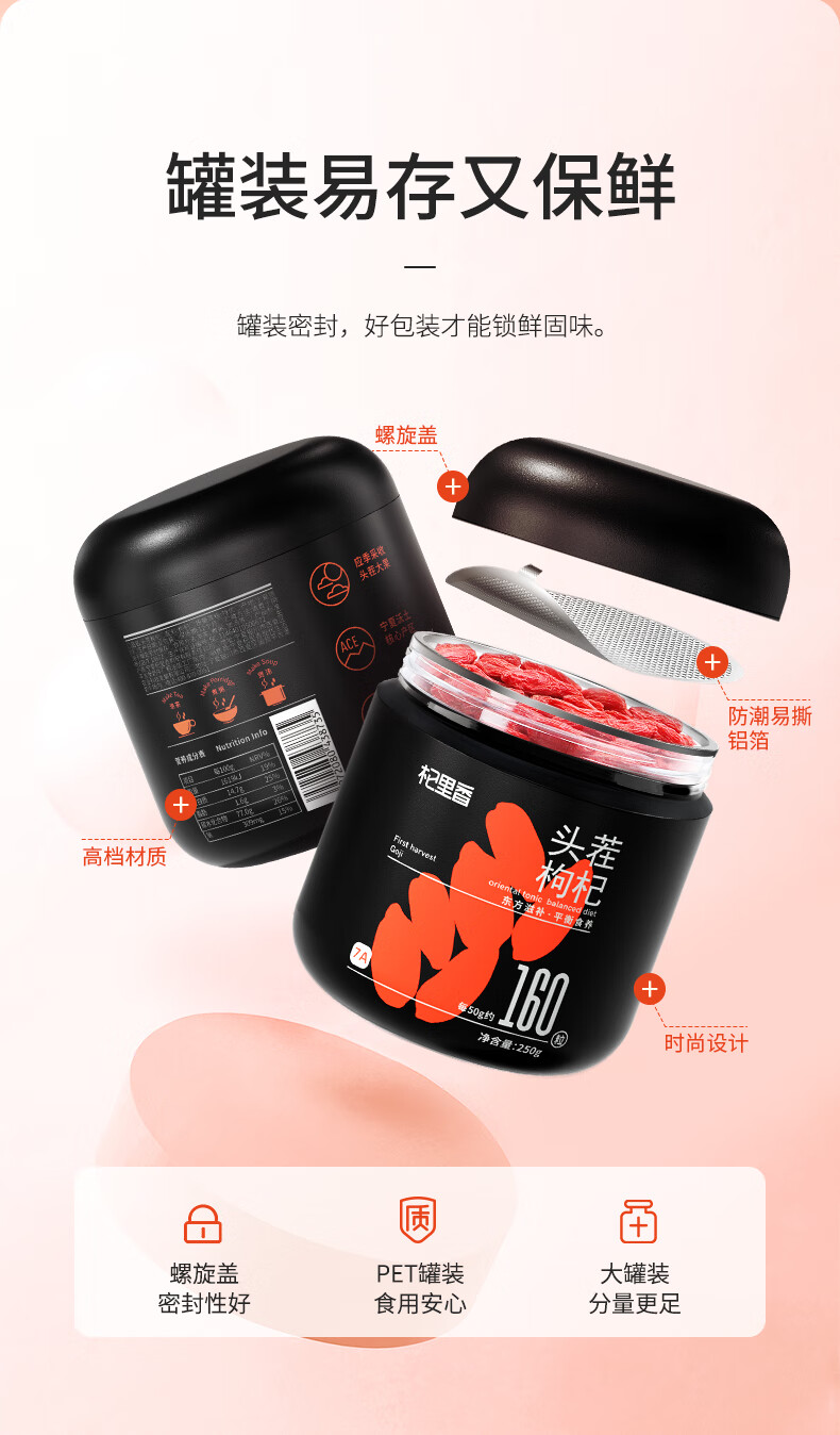 杞里香宁夏红枸杞-S级贡果(250g/罐)生产日期: 10月8日