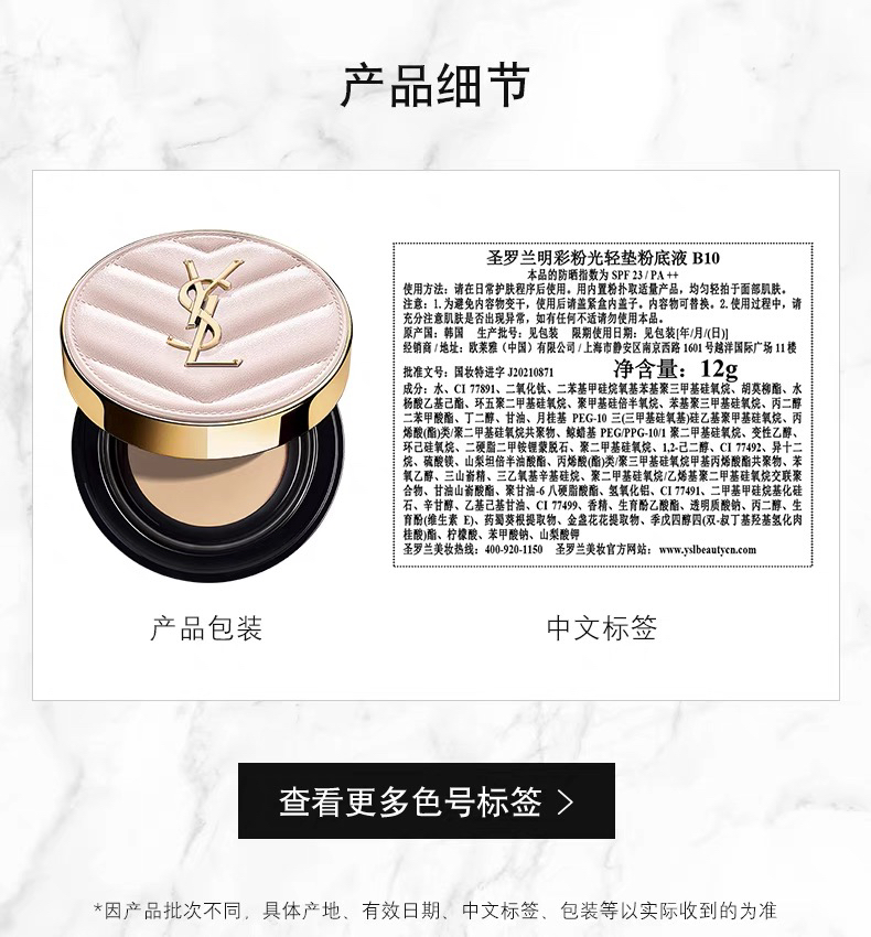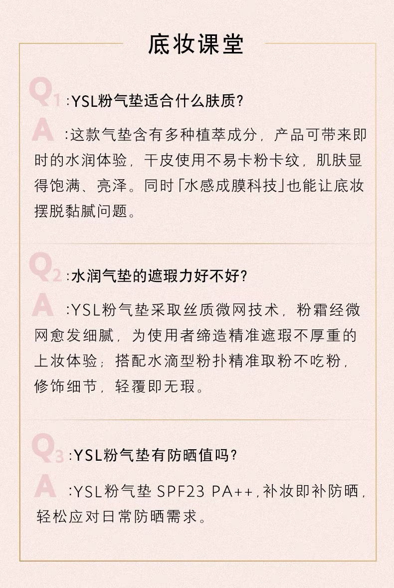 YSL圣罗兰2022 粉色皮革气垫B10 B20