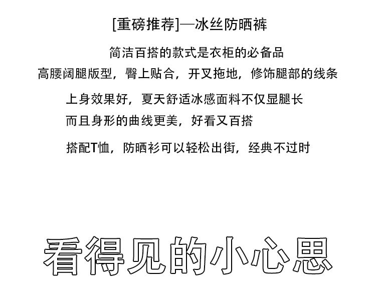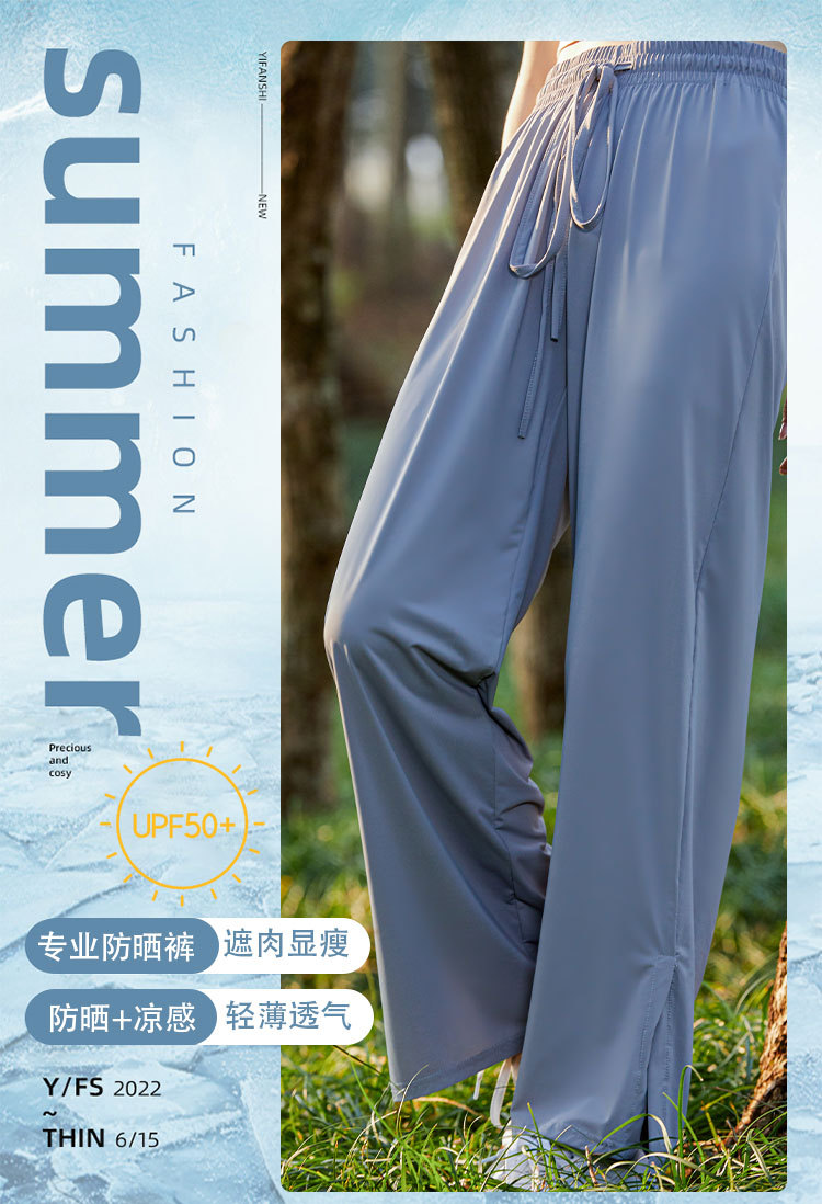 【蕉下防晒裤2023同款原纱防晒裤】夏轻薄透气开衩裤 高腰收腹垂坠阔腿 冰感面料臀部贴合上身效果好显腿长