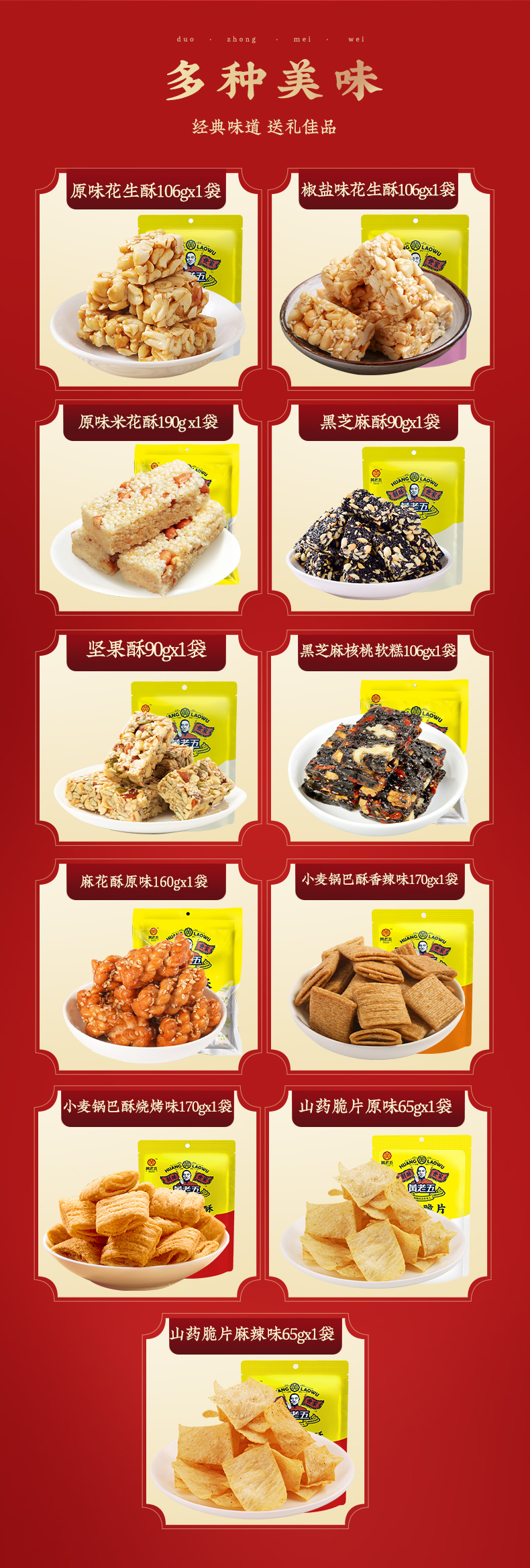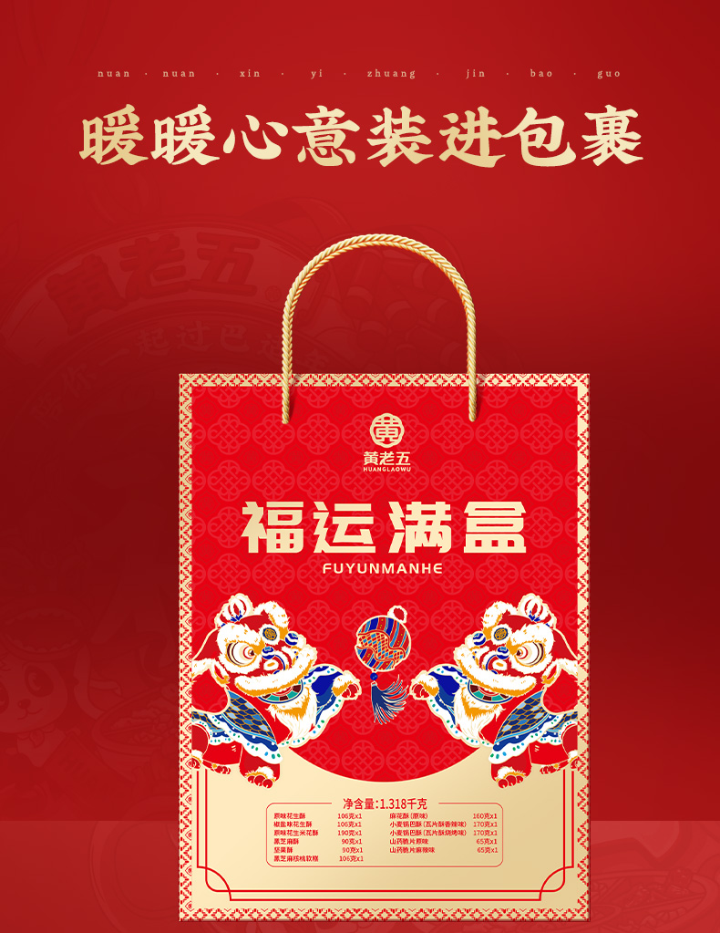 【黄老五福运满满1318g礼盒】花生酥糕点零食礼盒 四川特产送礼佳 非遗传承 匠心制酥