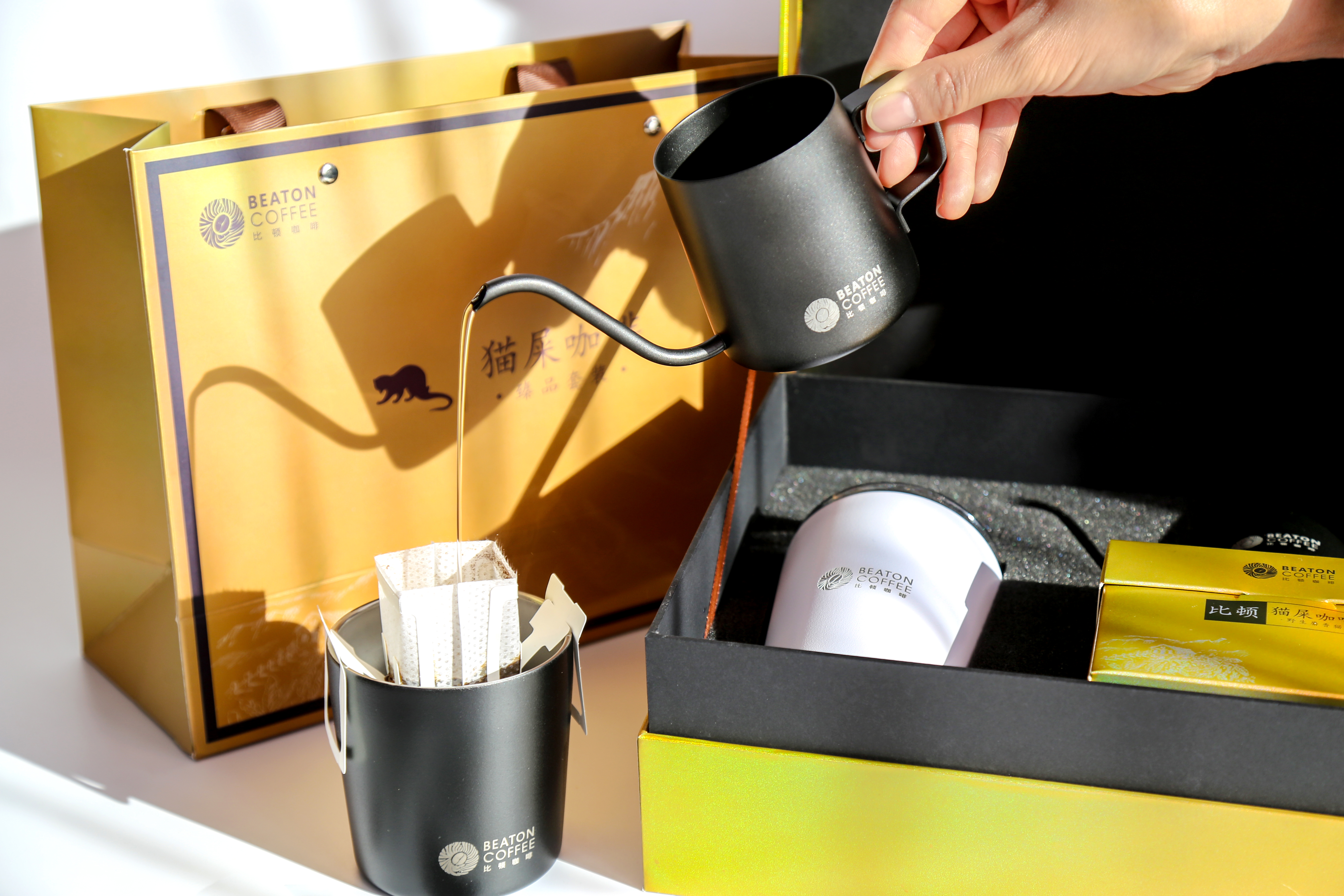 精选野生麝香猫咖啡,搭配乐饮咖啡杯及手冲细嘴壶,小巧精致而高端